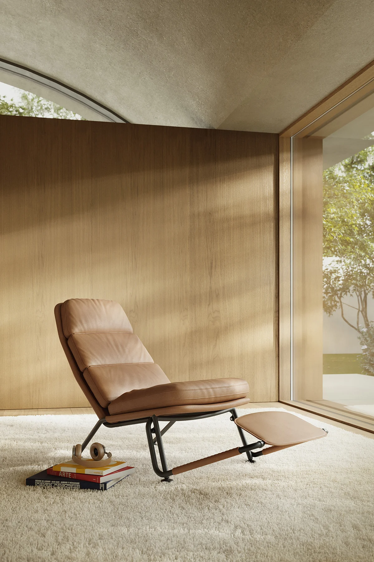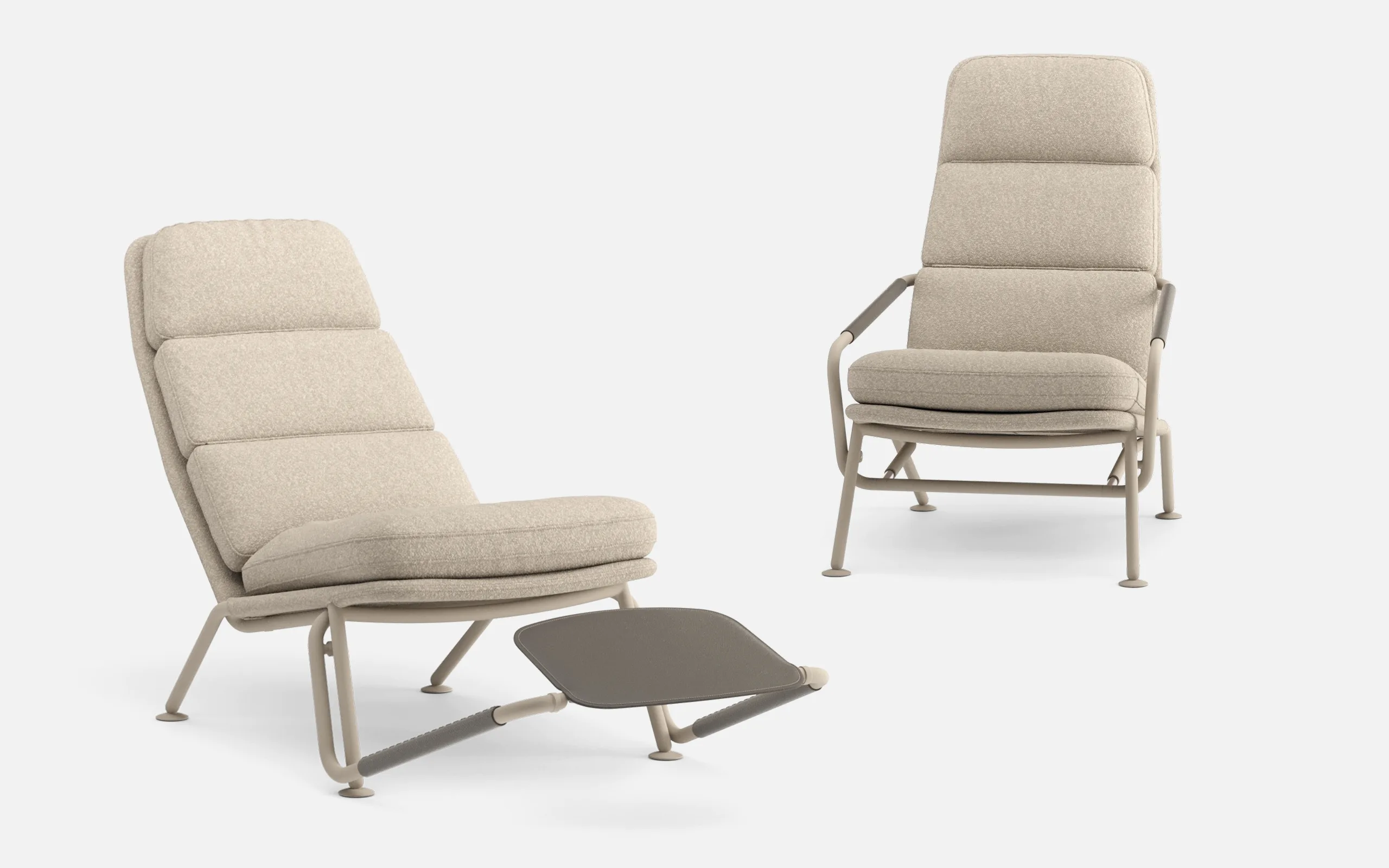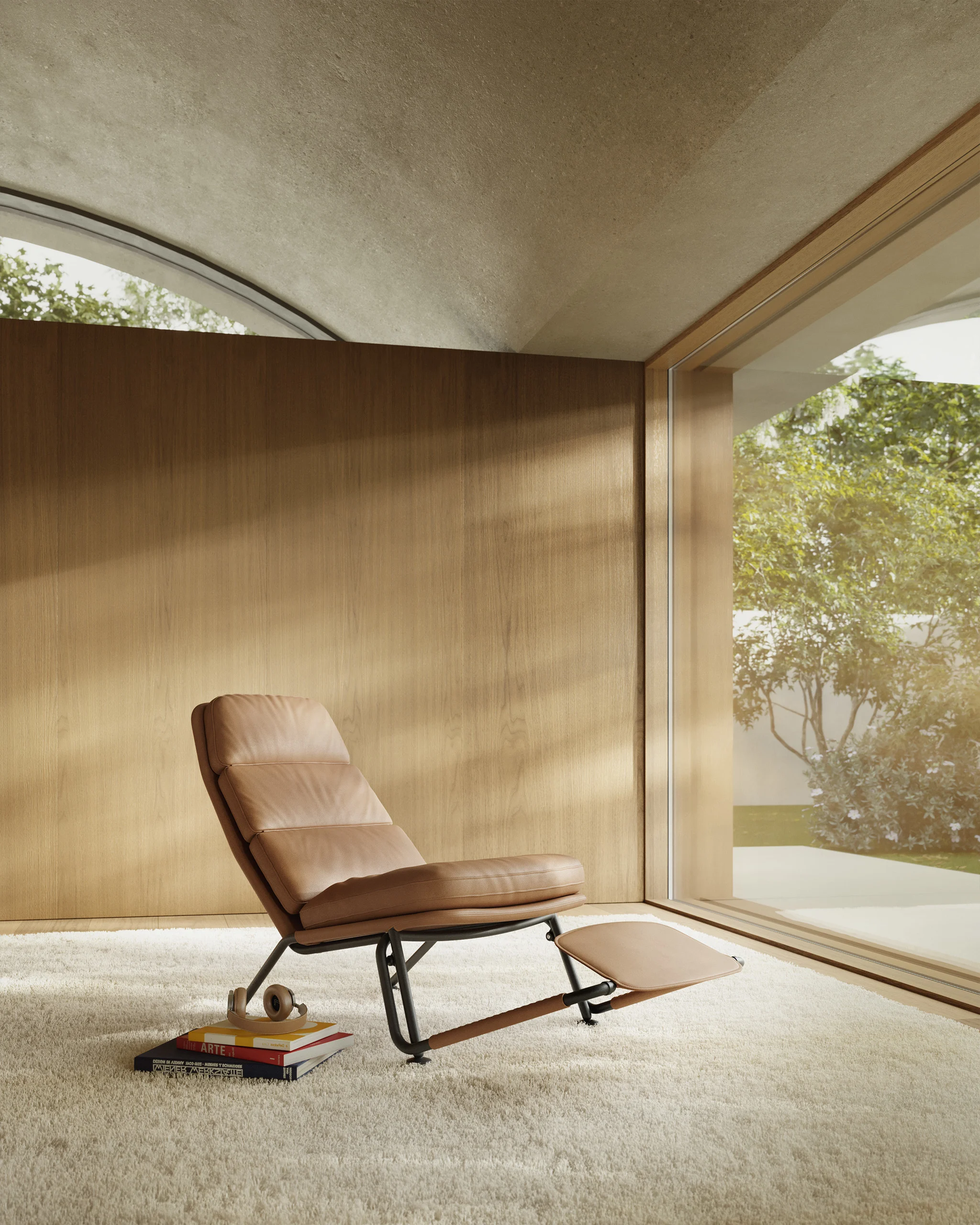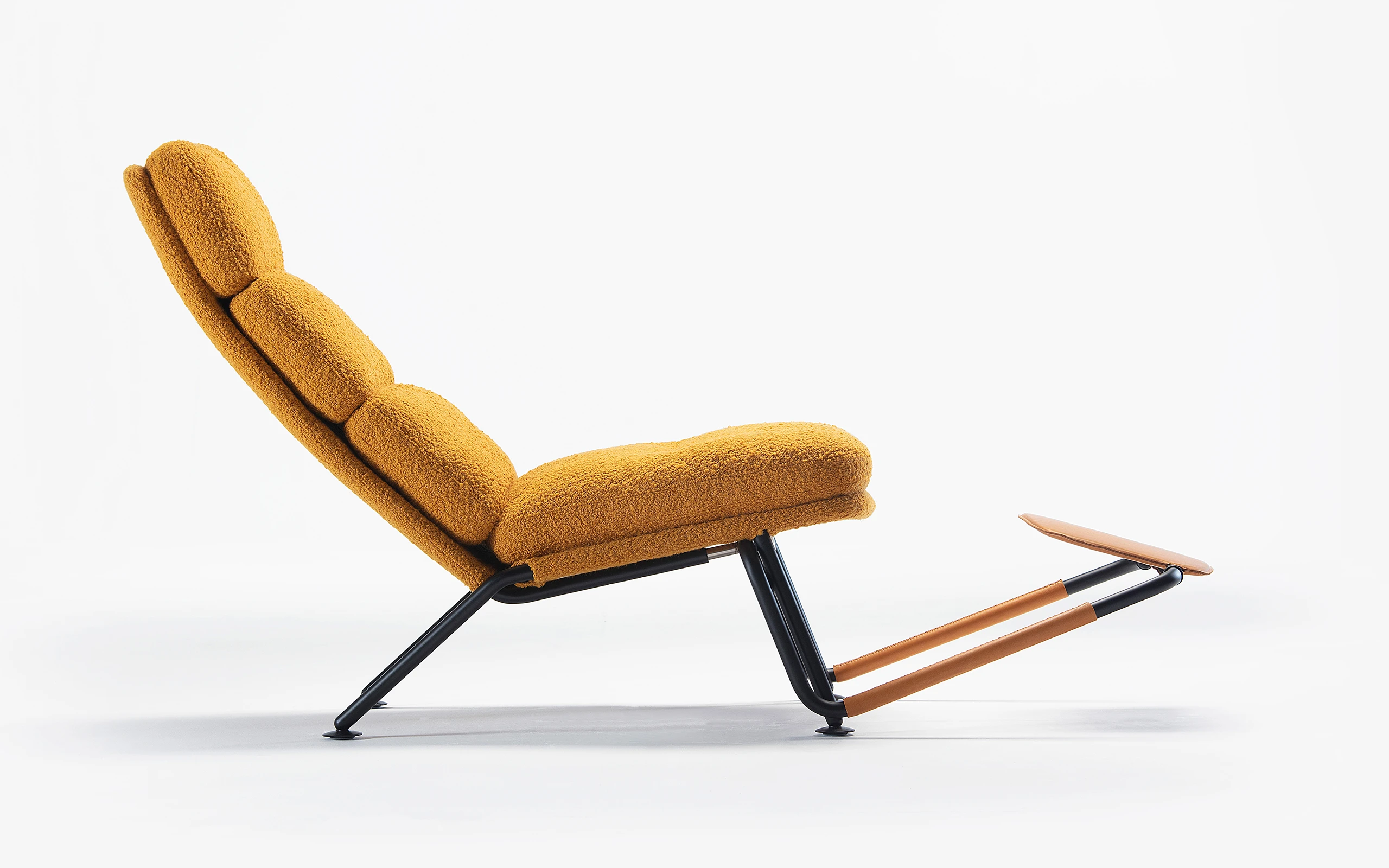 Kontrapunkt rethinks the bulky recliner, offering full lounge comfort in a compact, sculptural form. Positioned between an armchair and a chaise longue, it delivers precision over mass, an experience shaped by movement, structure, and lightness.