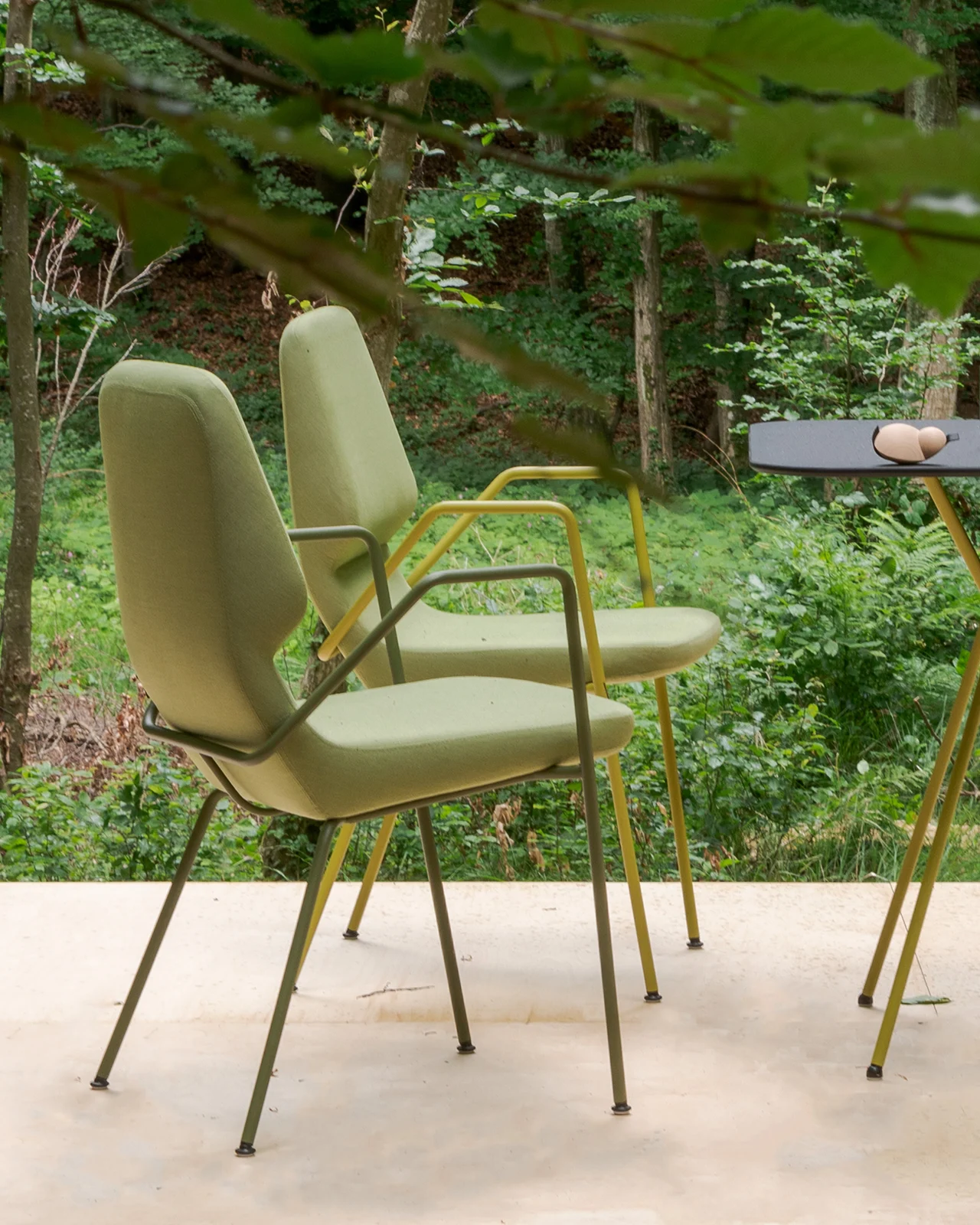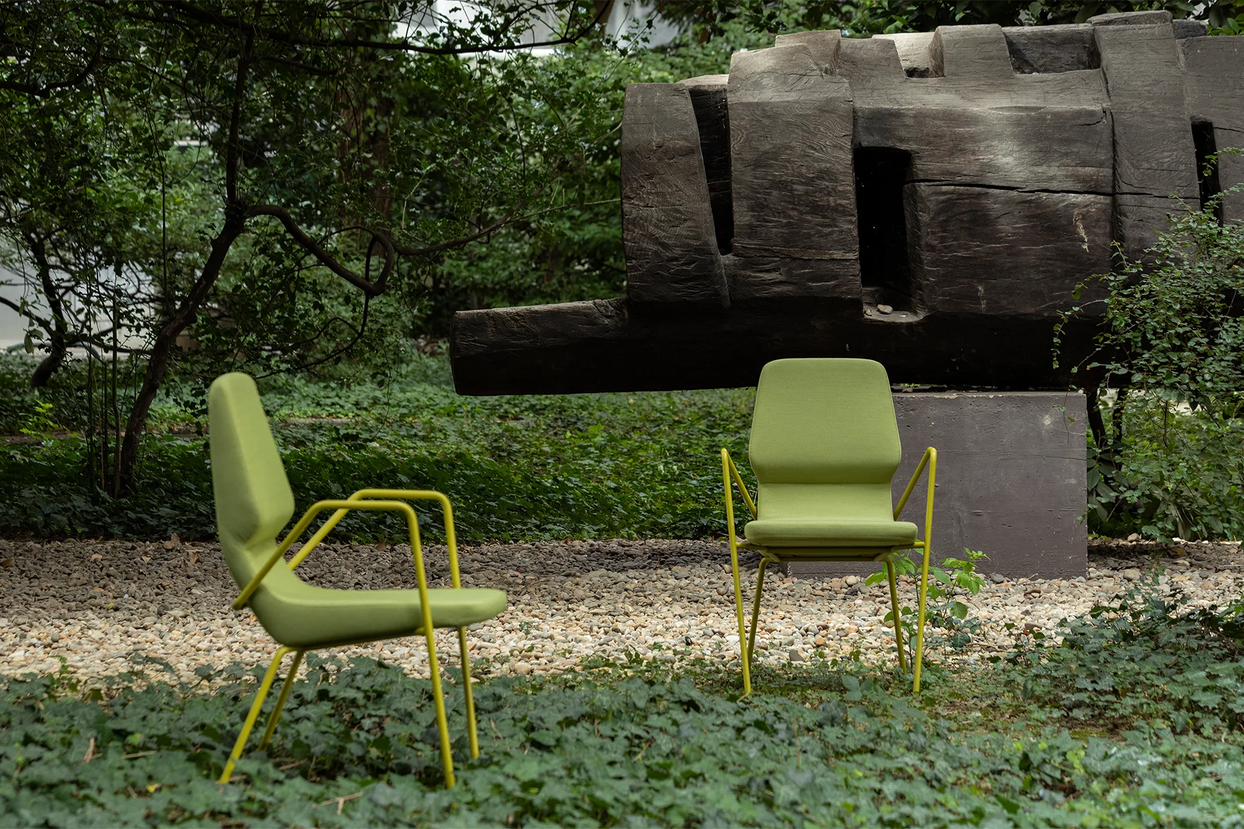 Oblique Outdoor reimagines the sculptural language of the original indoor collection for open-air living. Both the easy chair and chair preserve their distinctive geometric profiles - defined by intersecting triangular prisms that deliver ergonomic support precisely where the body needs it most. This refined structure achieves visual lightness while providing a level of comfort rarely found in outdoor furniture.
