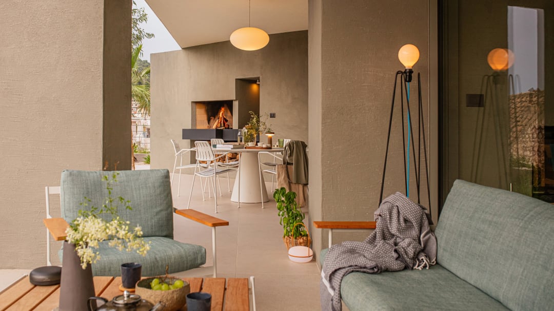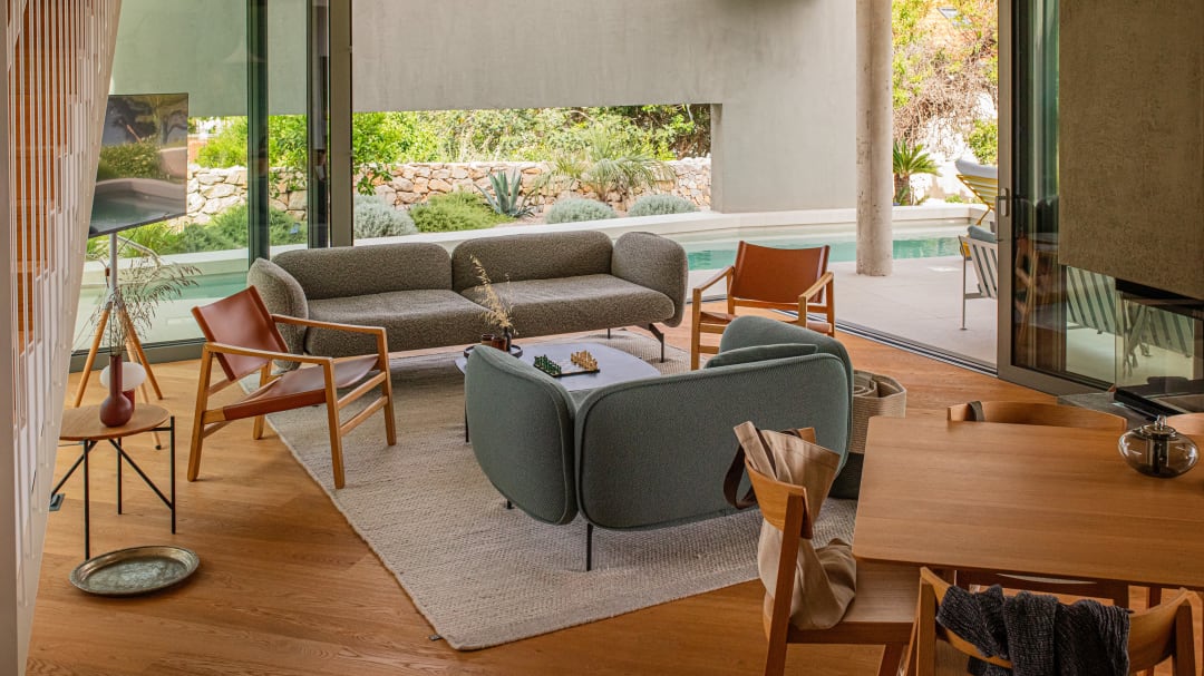 Umrahmt von Steinmauern und offen für Sonne und Wind, besticht das Haus durch einen introvertierten und dennoch fließenden Grundriss, bei dem Innen- und Außenbereich nahtlos ineinander übergehen – ideal für ein ganzjähriges Leben im Freien. Unsere Möbel fügen sich harmonisch in diese Räume ein. Das großzügig gepolsterte Sofa und der Sessel Echo prägen die Atmosphäre des Wohnzimmers als Rückzugsort. Der Esstisch Monk und die Stühle Bik fördern das gesellige Beisammensein im Essbereich, während die Barhocker Strain der Küche Struktur und Rhythmus verleihen.