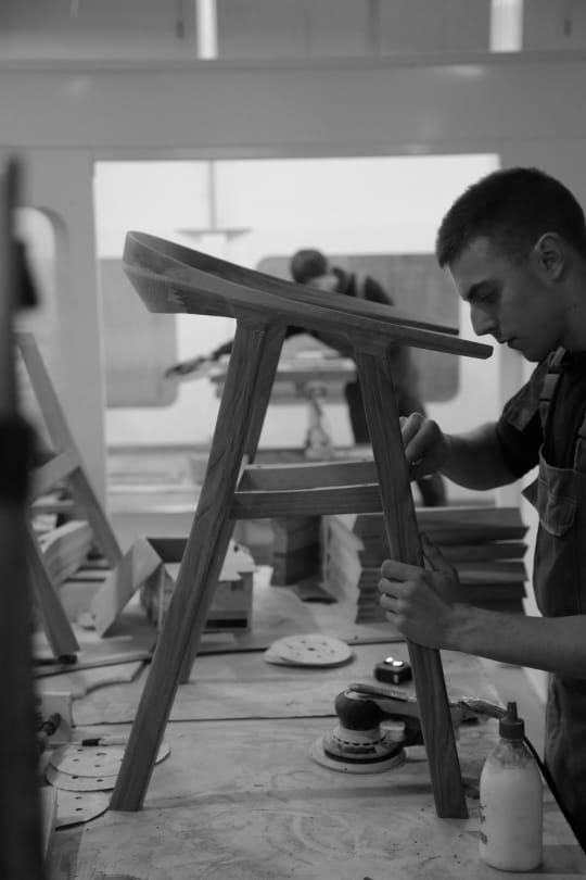 Simon: Natürlich bin ich stolz – vor allem, wenn ich von Architekten und Agenten höre, dass Rhomb als einer der bequemsten Holzstühle auf dem Markt gilt. Es ist eine Freude, ihn in Architekturprojekten zu sehen, wo seine Präsenz natürlich und gleichzeitig sorgfältig gewählt wirkt.