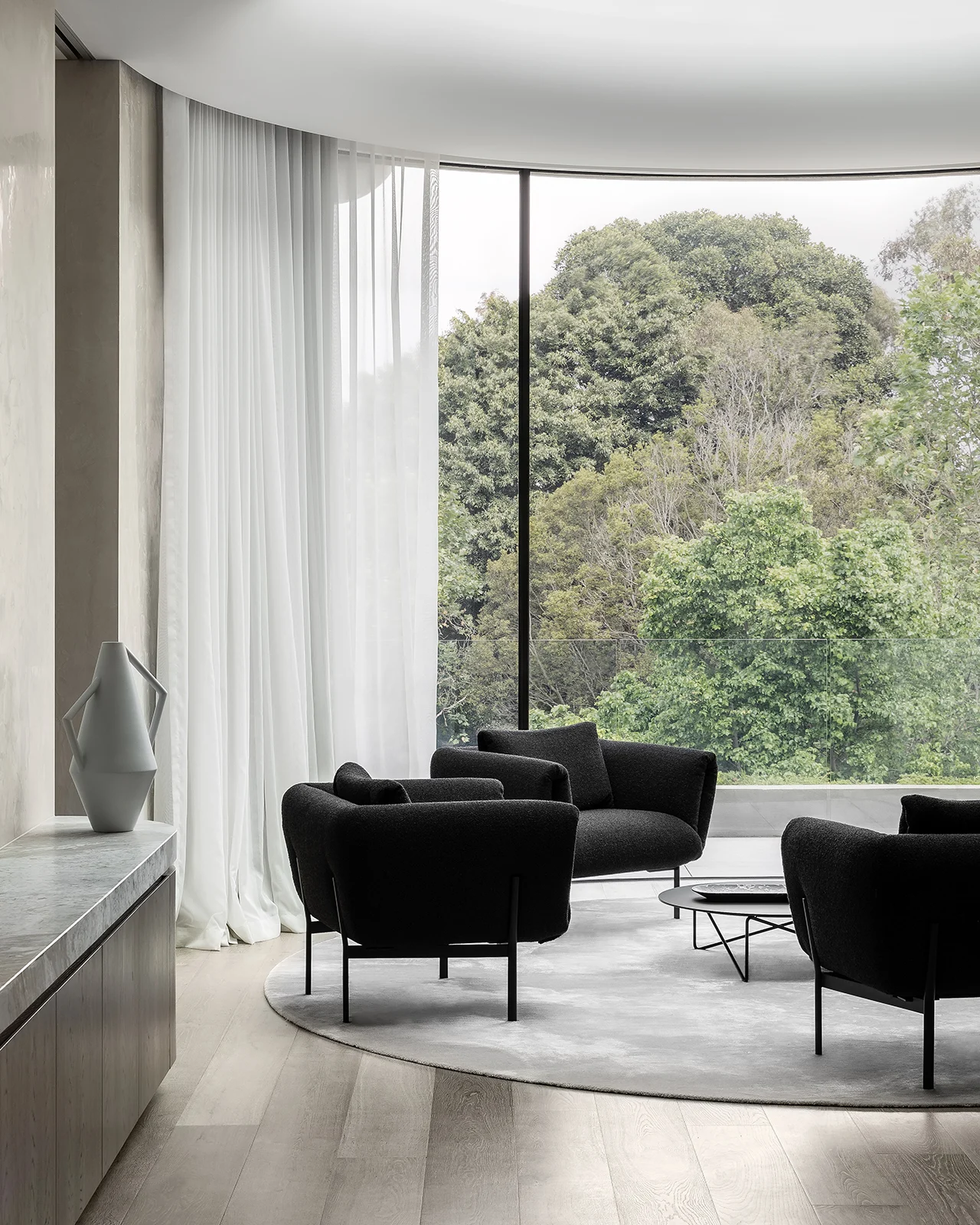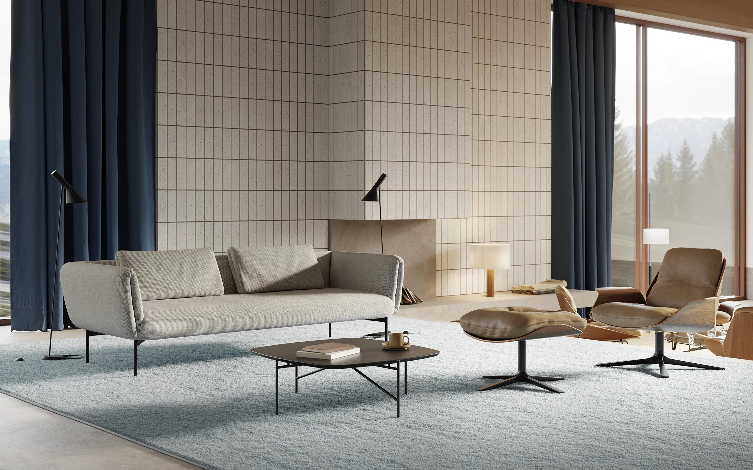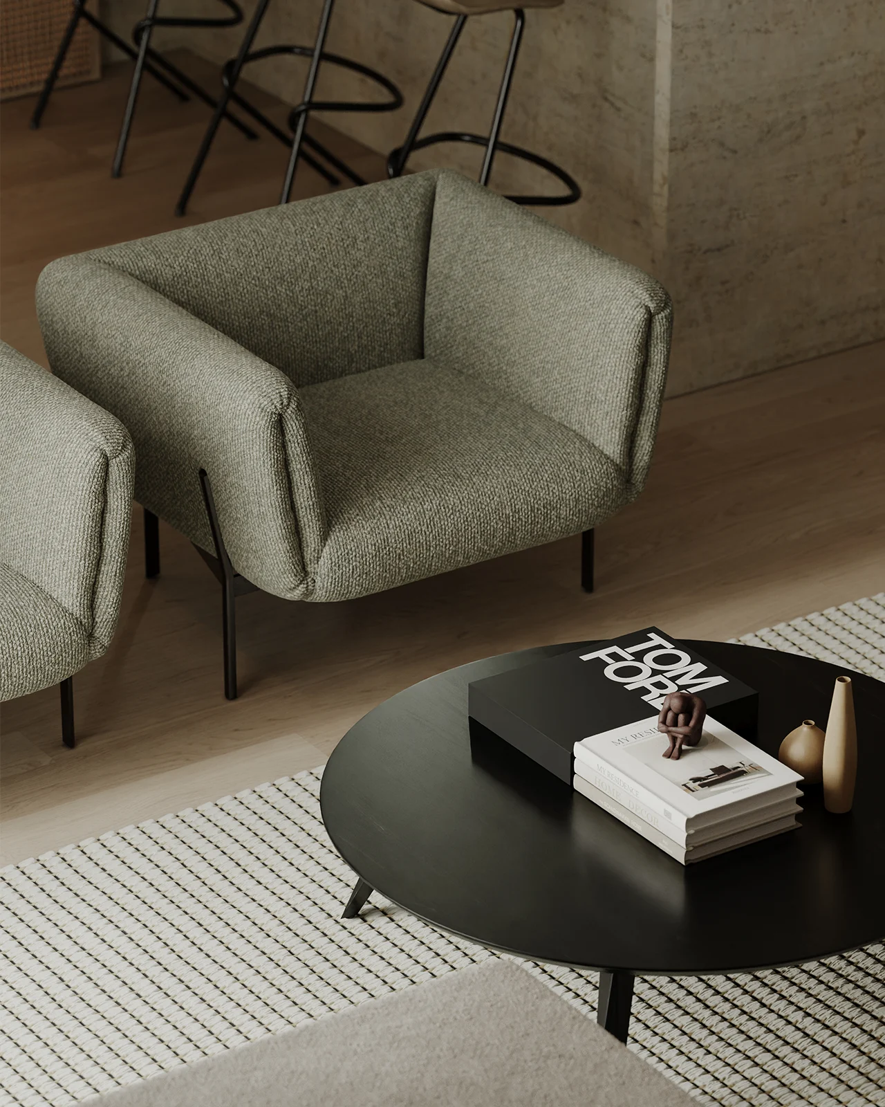 Impression vereint raffinierte Eleganz mit einladendem Komfort. Entworfen für alltägliche Rituale wie Sitzen, Zusammensein und Entschleunigung, verleiht er jedem Raum eine sanfte Präsenz. Tiefe, schmale Armlehnen und sanft geschwungene Innenkonturen bieten sanften Halt, während schlanke Beine ein Gefühl von Leichtigkeit vermitteln.