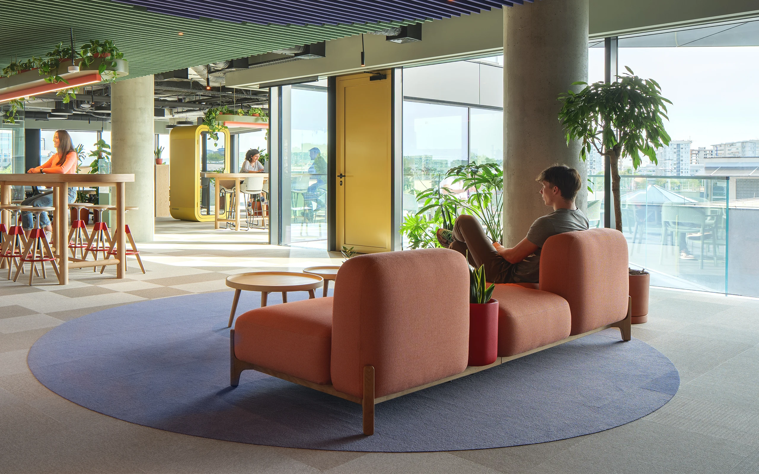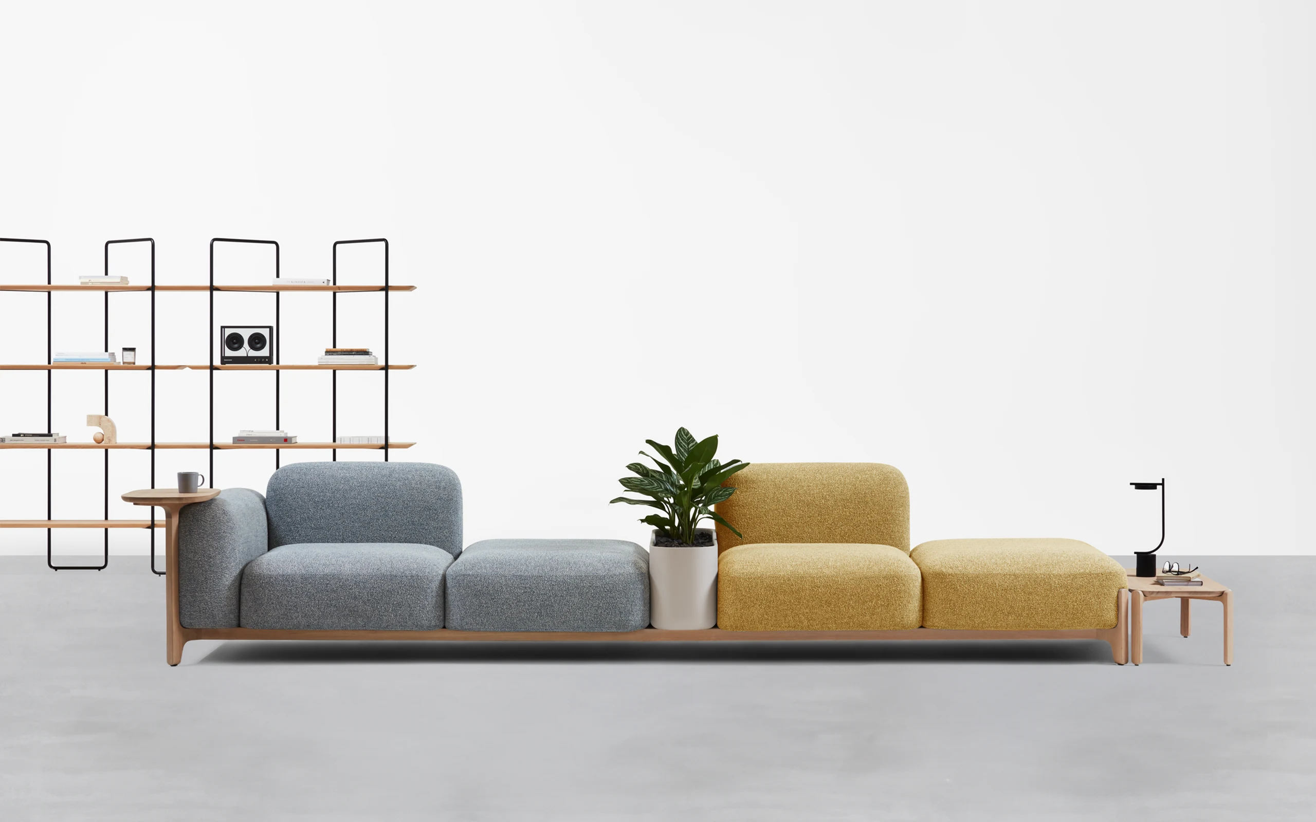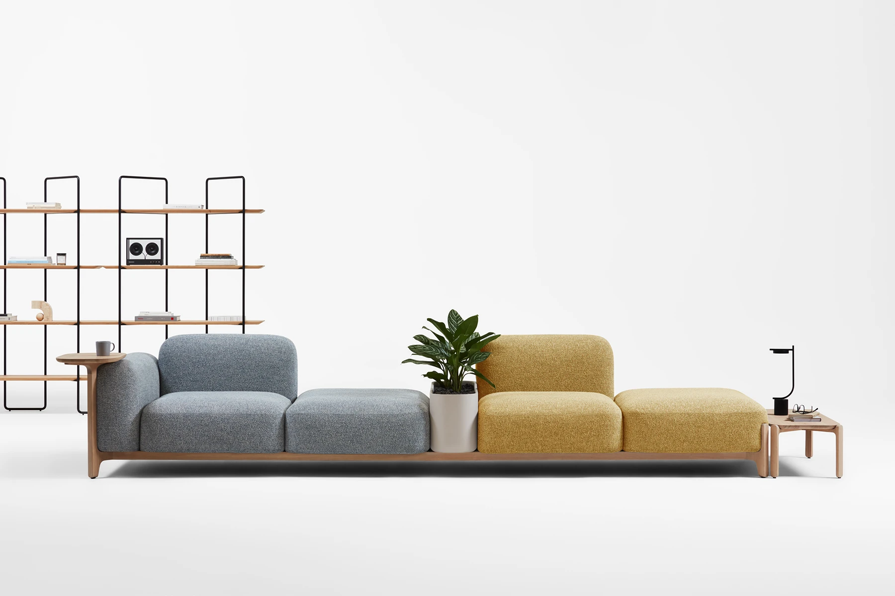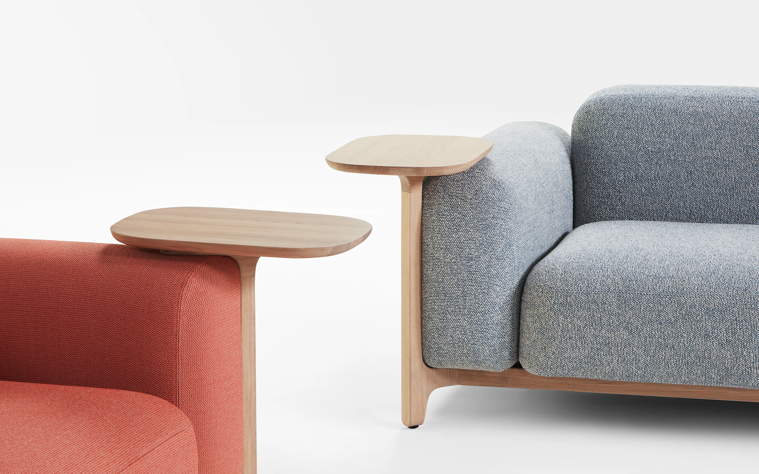 Sabot bringt fröhlichen Rhythmus in die Gemeinschaftsräume. Das modulare Sofasystem mit weichen, skulpturalen Formen und charmanten Holzbeinen verbindet vertrauten Komfort des Heimes mit der Anpassungsfähigkeit an gewerbliche Anforderungen. Inspiriert von der Form traditioneller Holzschuhe, hebt Sabot mit seinen freiliegenden Beinen jedes Modul an und erzeugt ein leichtes, schwebendes Gefühl – eine stille Hommage an meisterhafte Holzverarbeitung von Prostoria.