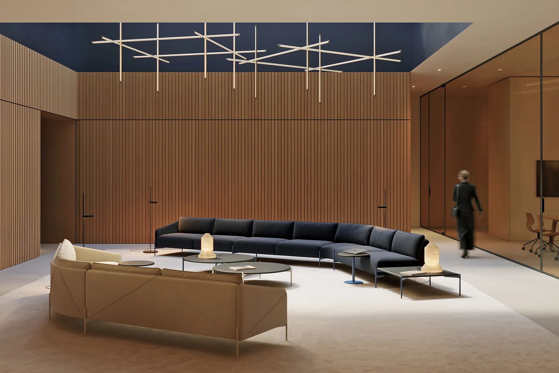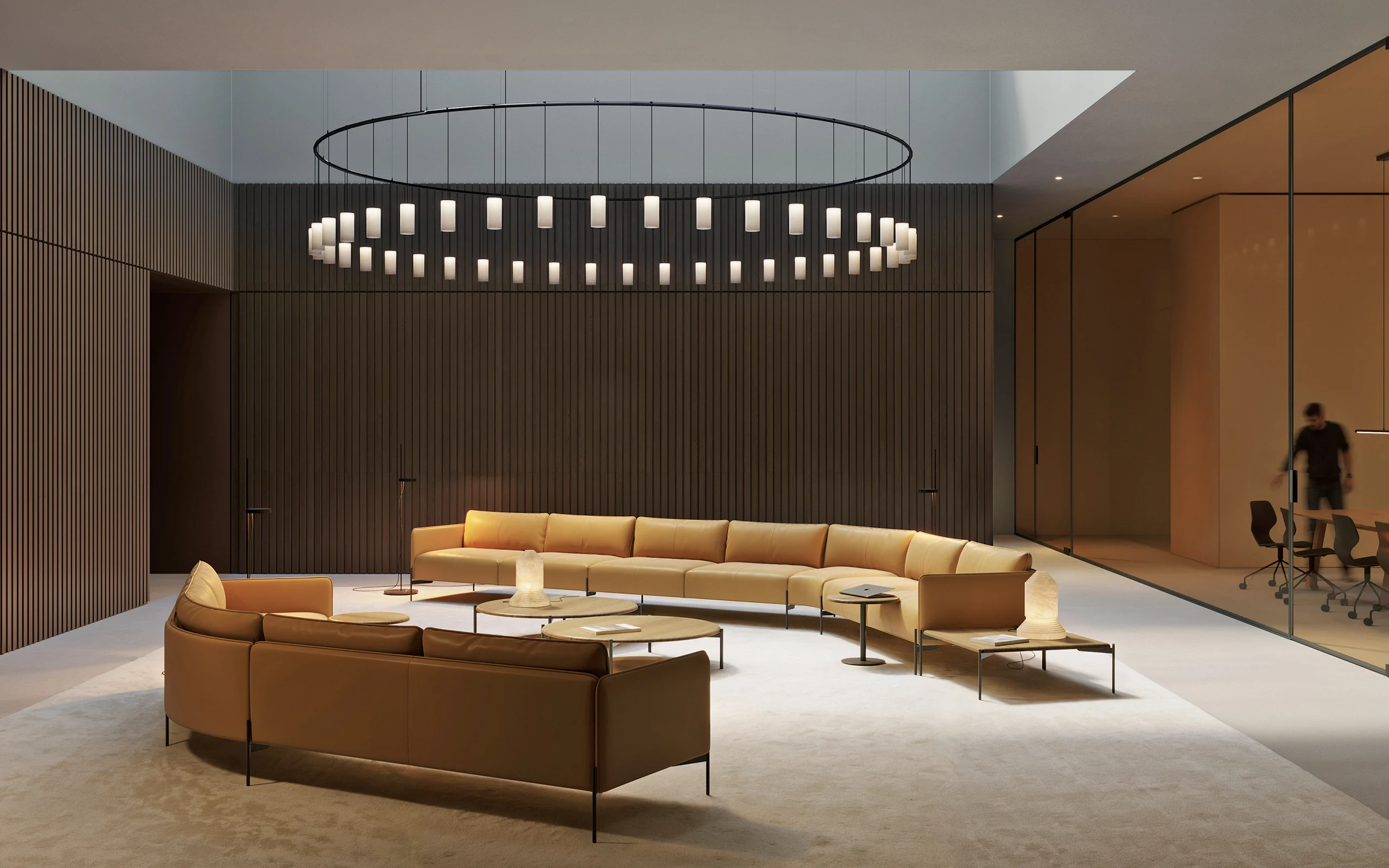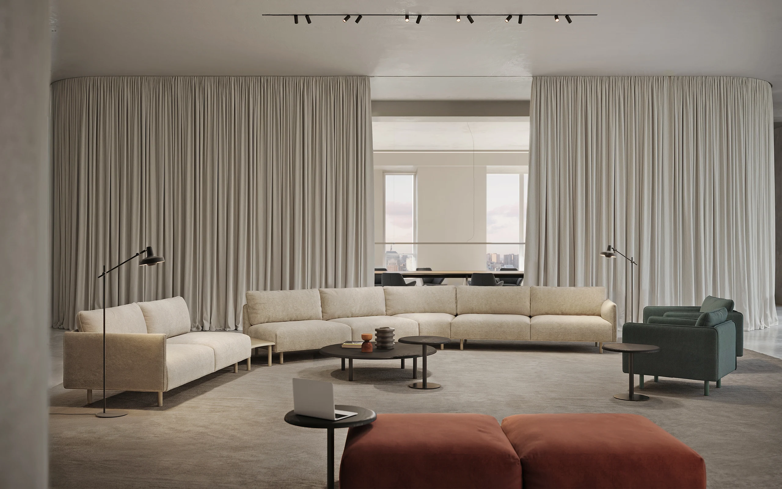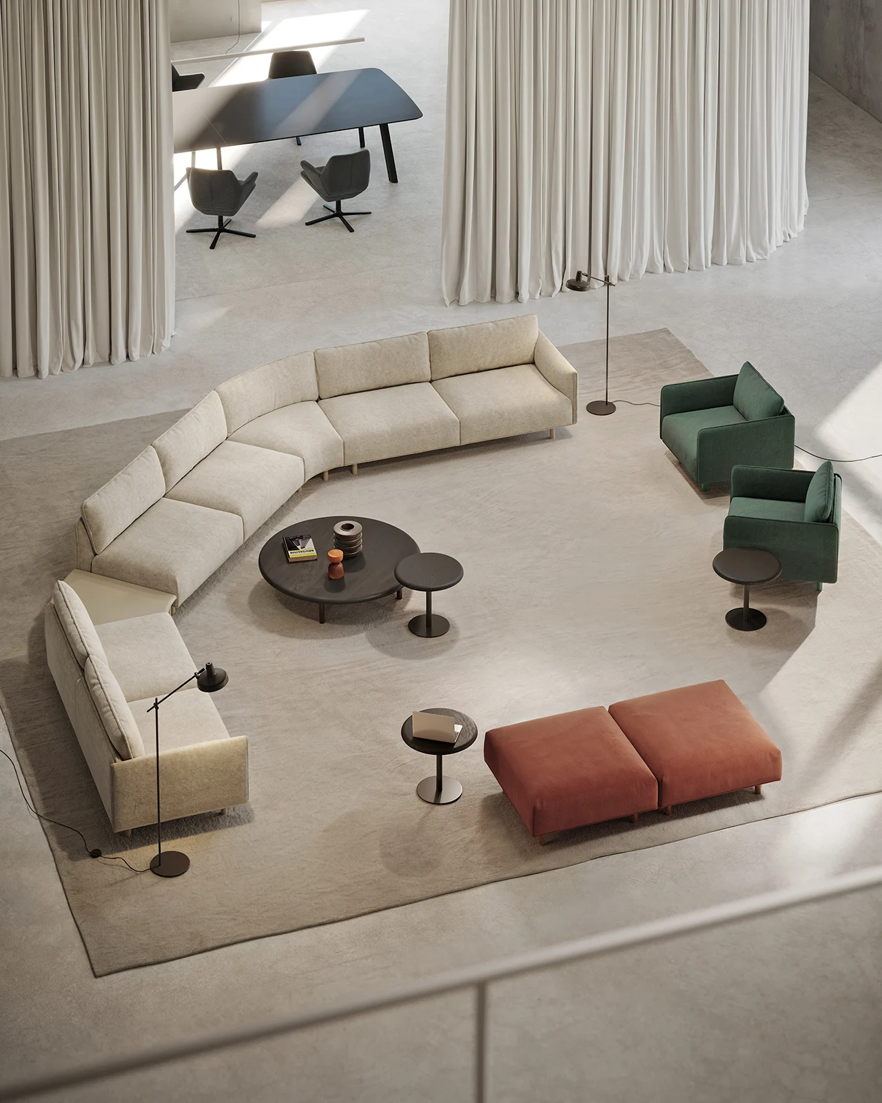 Das Spectrum System ist für dynamische, im ständigen Wandel befindliche Räume konzipiert. Ein Ort, an dem Menschen spontan zusammenkommen und Kontakte knüpfen. Diese Kollektion ist mehr als nur Sitzmöbel – sie ist ein Werkzeug zur Gestaltung von Raum und Erlebnis. Dank seiner fließenden modularen Logik schafft das Spectrum System gleichermaßen Atmosphäre für ruhige Gespräche wie für zwanglose Zusammenkünfte und bringt Leichtigkeit und Harmonie in selbst die geräumigsten Innenräume.
