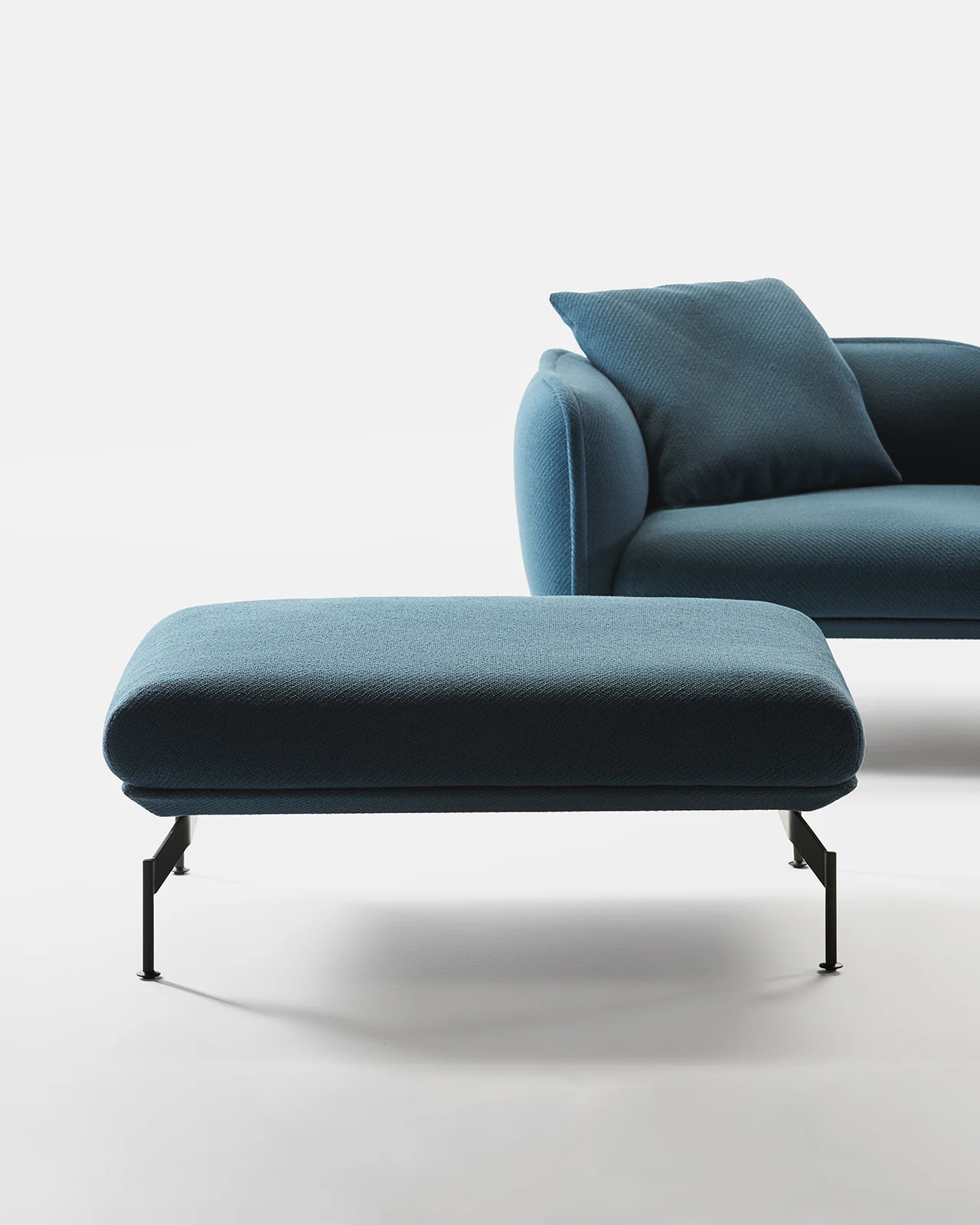 Mit seiner vielseitigen Form und der weichen, ansprechenden Haptik vervollständigt der Echo Hocker die Kollektion. Er kann als Fußstütze, zusätzlicher Sitz oder einfacher Beistelltisch eingesetzt werden – seine gepolsterte Form passt sich mühelos Ihren Bedürfnissen an. In Anlehnung an die Formensprache von Sofa und Sessel entworfen, fügt er sich nahtlos in modulare Kompositionen ein oder tritt als eigenständiges, funktionales Detail hervor. Bezogen mit Stoff oder einer Stoff-Leder-Kombination, bietet der Hocker ein gleiches Maß an Komfort und Funktionalität.