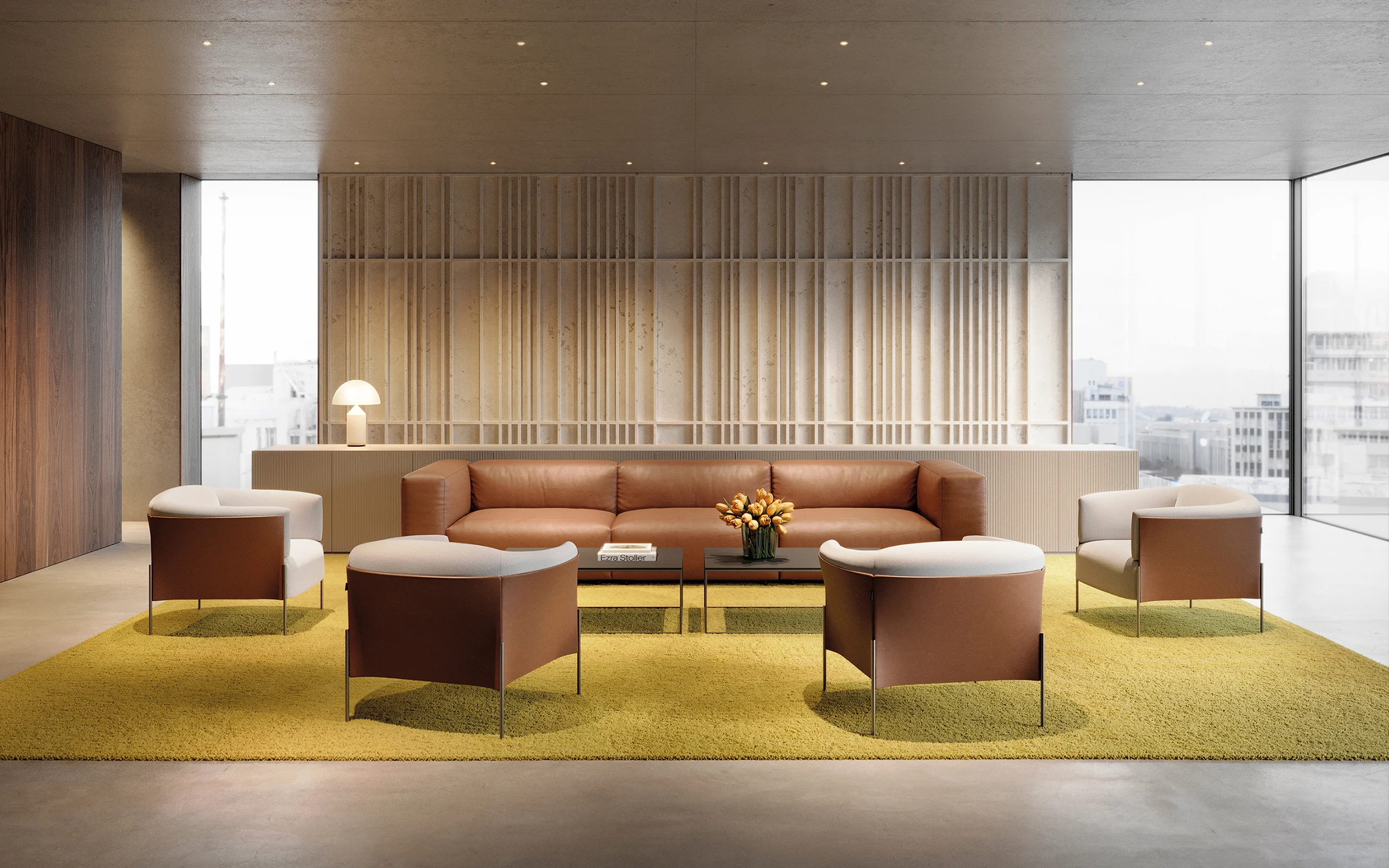 Die skulpturale Ruhe der Kollektion findet ihren Ausdruck im Omnia Armsessel als einzigartiger Sitzgelegenheit. Seine Schale mit ihren konvexen und konkaven Linien leitet die Haltung subtil, während das weiche Kissen zu ausgedehntem Komfort einlädt. Mit seiner kompakten und dennoch ausdrucksstarken Form eignet sich der Armsessel gleichermaßen für Leseecken und Lobbys oder als zentrales Element von Sitzlandschaften. Mit seiner ergonomischen Raffinesse und eleganten Proportionen schenkt Omnia jedem Innenraum Harmonie und Komfort.