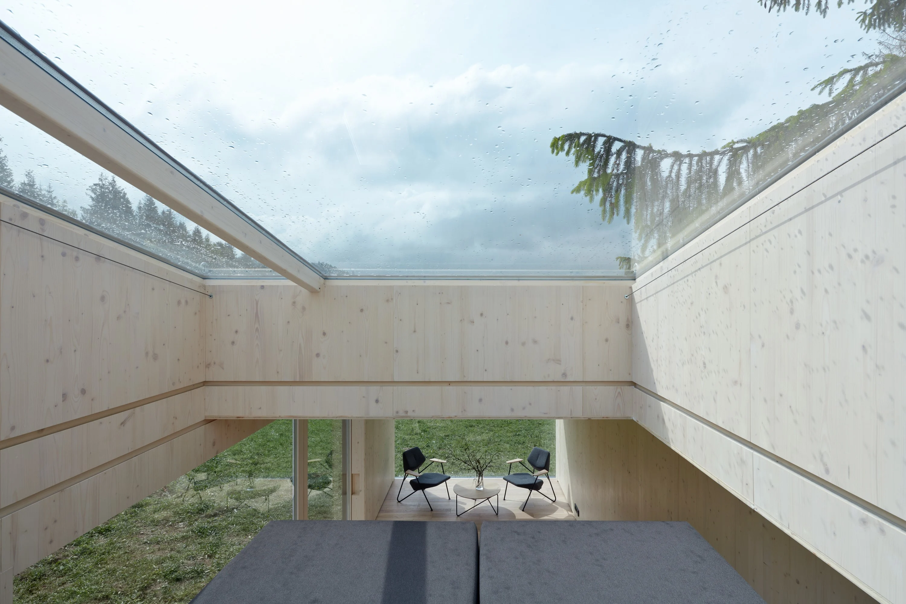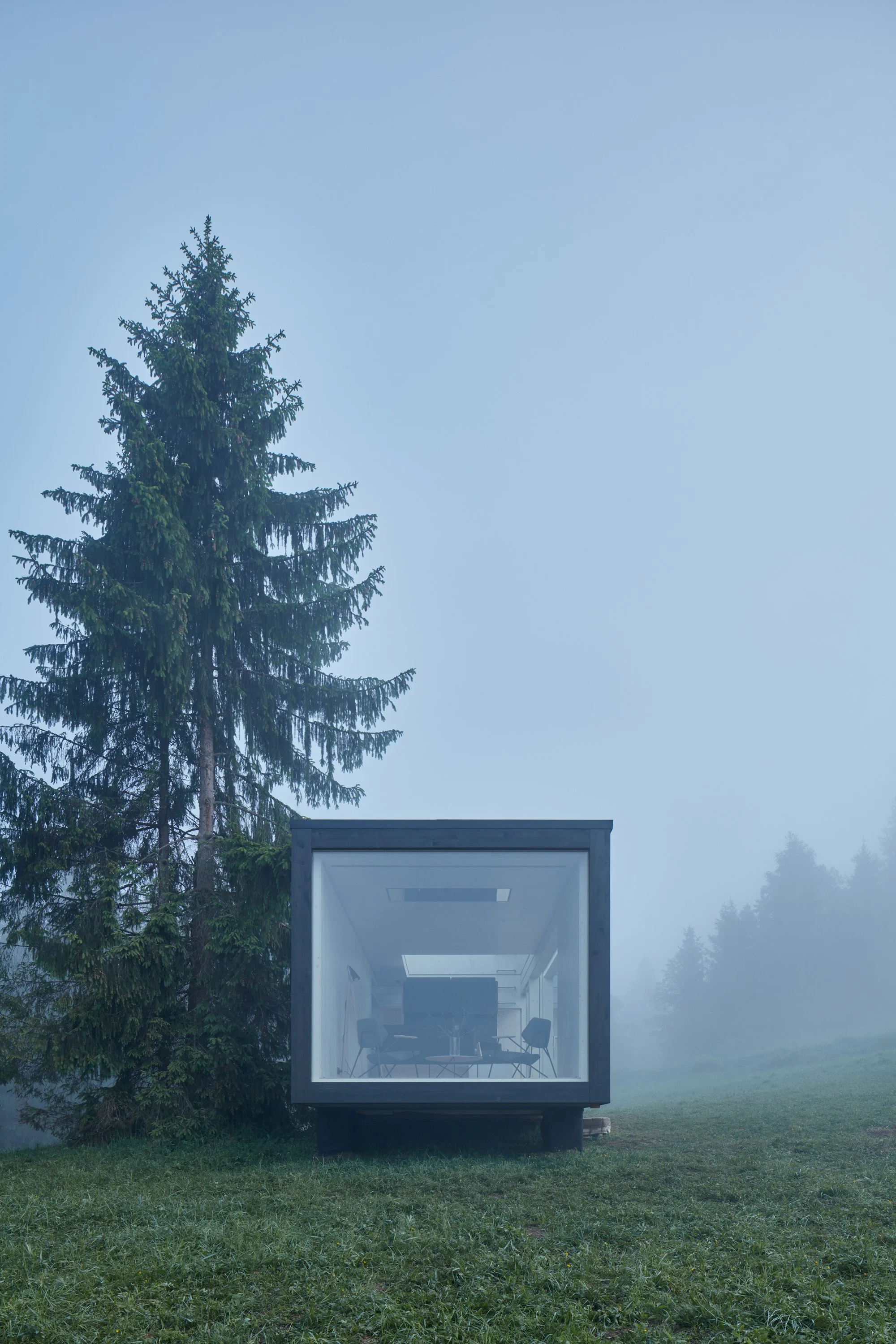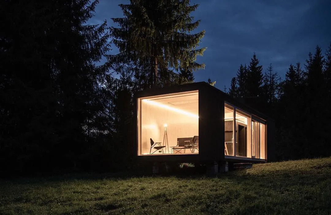Das Projekt Ark-Shelter verkörpert die Harmonie zwischen minimalistischer Architektur und durchdachtem Design, wobei Prostorias Polygon Stücke funktionale Eleganz und geometrische Klarheit in naturverbundene Räume bringen.