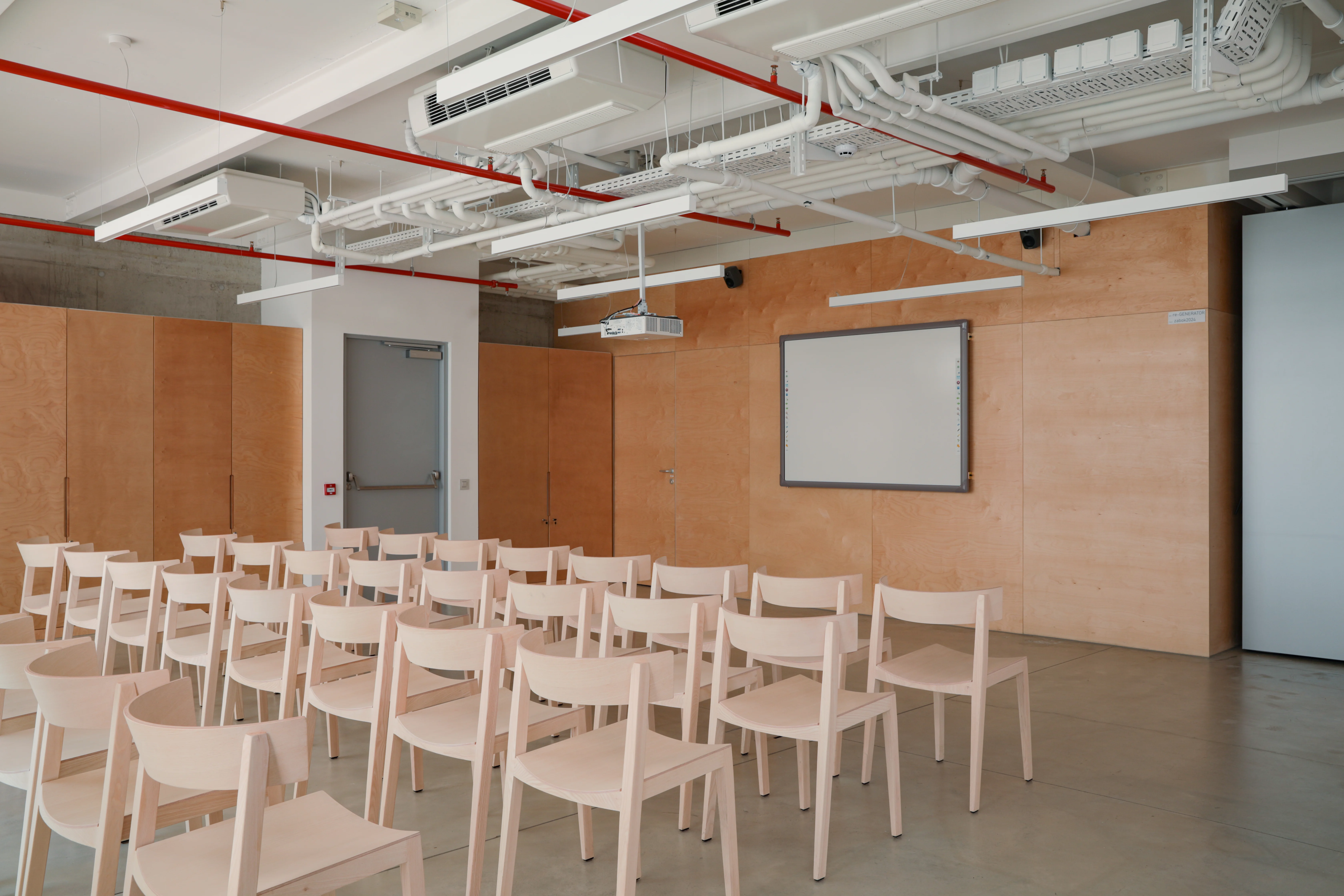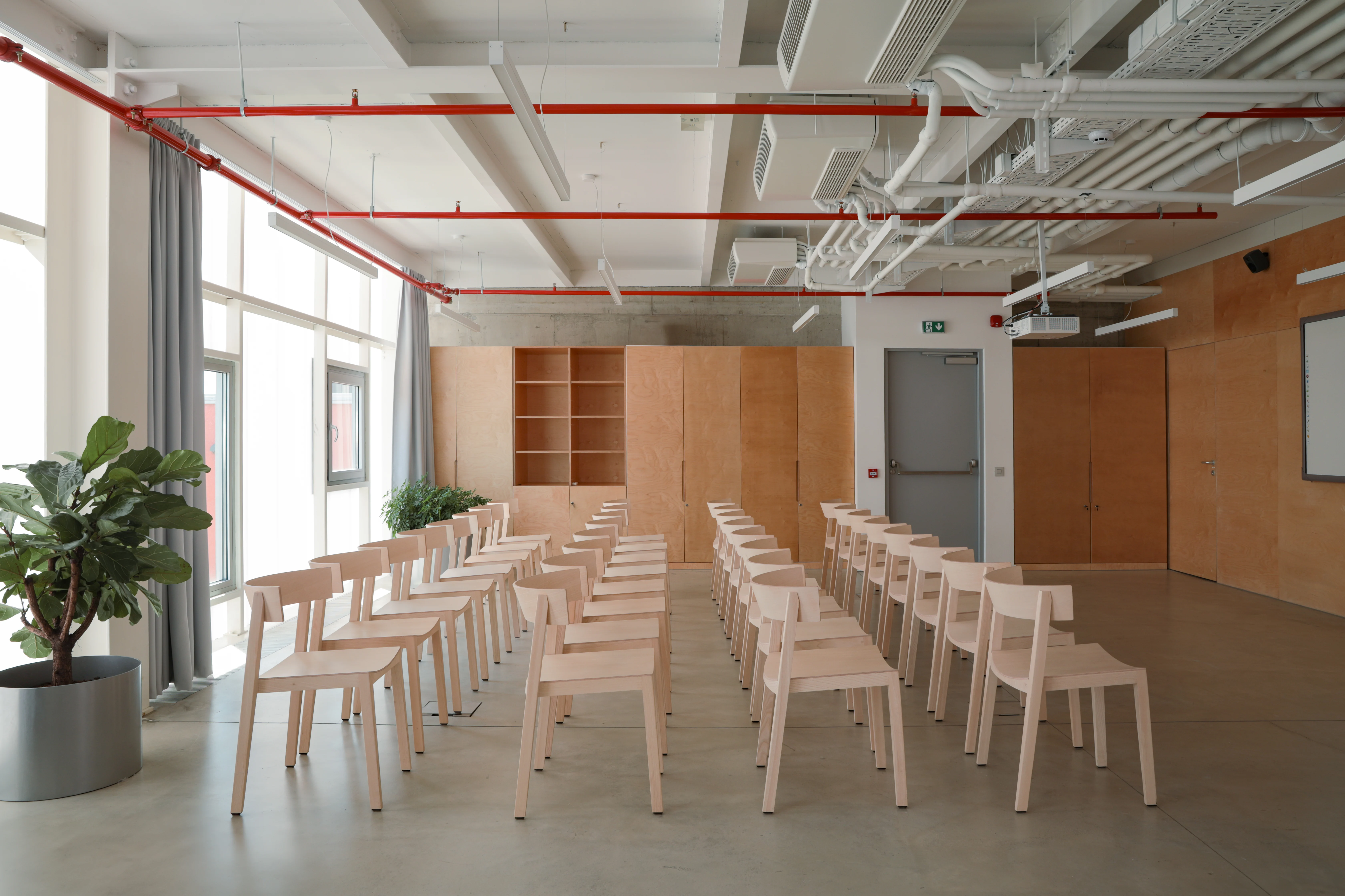 Das Konzept führt die industrielle Ästhetik fort und setzt auf offene, lichtdurchflutete Räume, die Interaktion fördern und eine hohe Anpassungsfähigkeit gewährleisten. Bemalte Materialien, hohe Decken und durchdachte Proportionen heben den Geist der Erneuerung hervor – in diesem Raum leben Vergangenheit und Gegenwart in einem fließenden Austausch zwischen Form und Funktion.