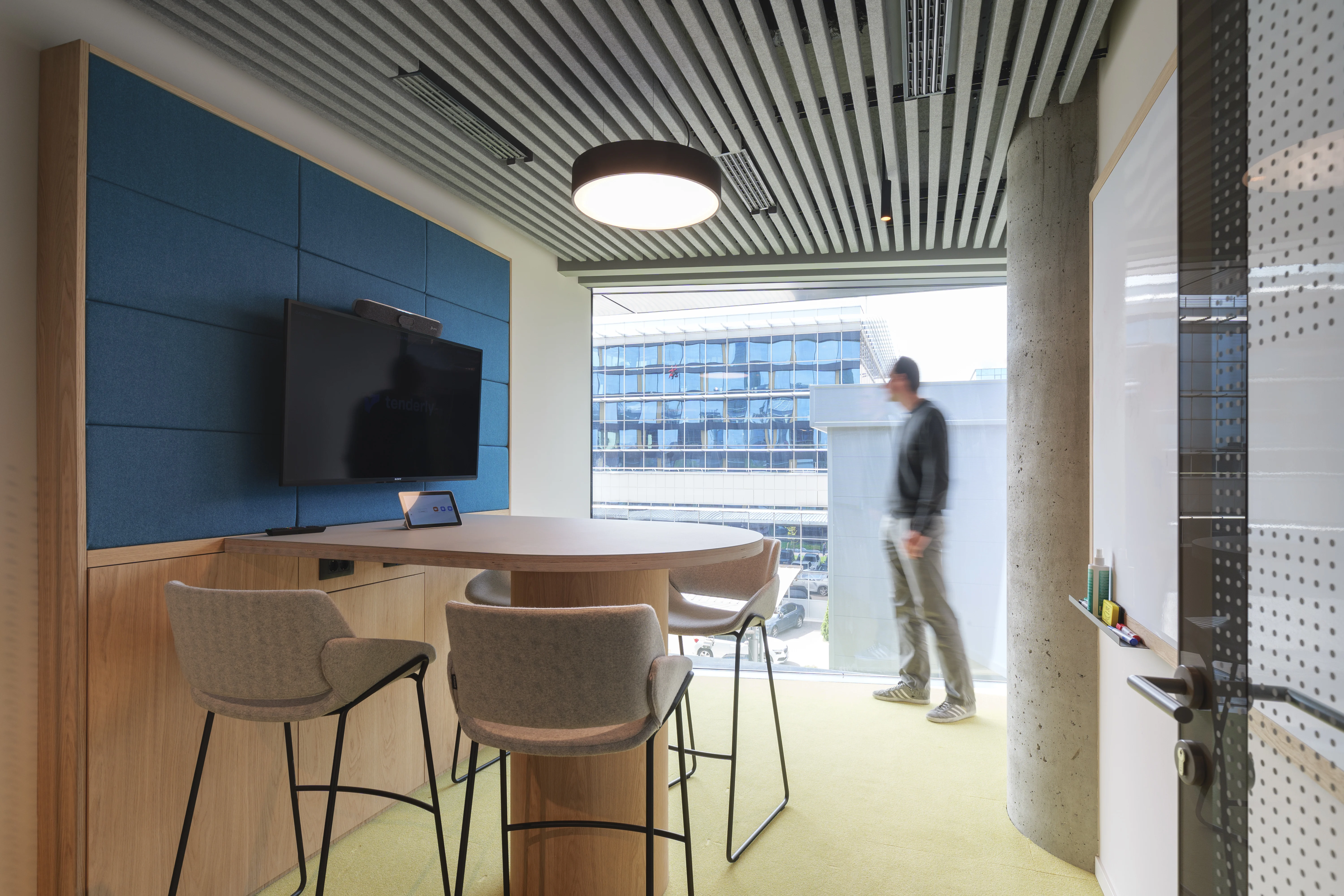 Monk-Stühle bieten die perfekte Balance zwischen ergonomischer Unterstützung und einladendem Komfort und verkörpern Stil und Funktionalität. Das Sabot-Sofa sorgt für Farbtupfer und dient als stilvoller Raumteiler, der die Gesamtästhetik ergänzt. Mit strategischen Treffpunkten und Loungebereichen fördert Tenderly Office ein kollaboratives und integratives Arbeitsumfeld.