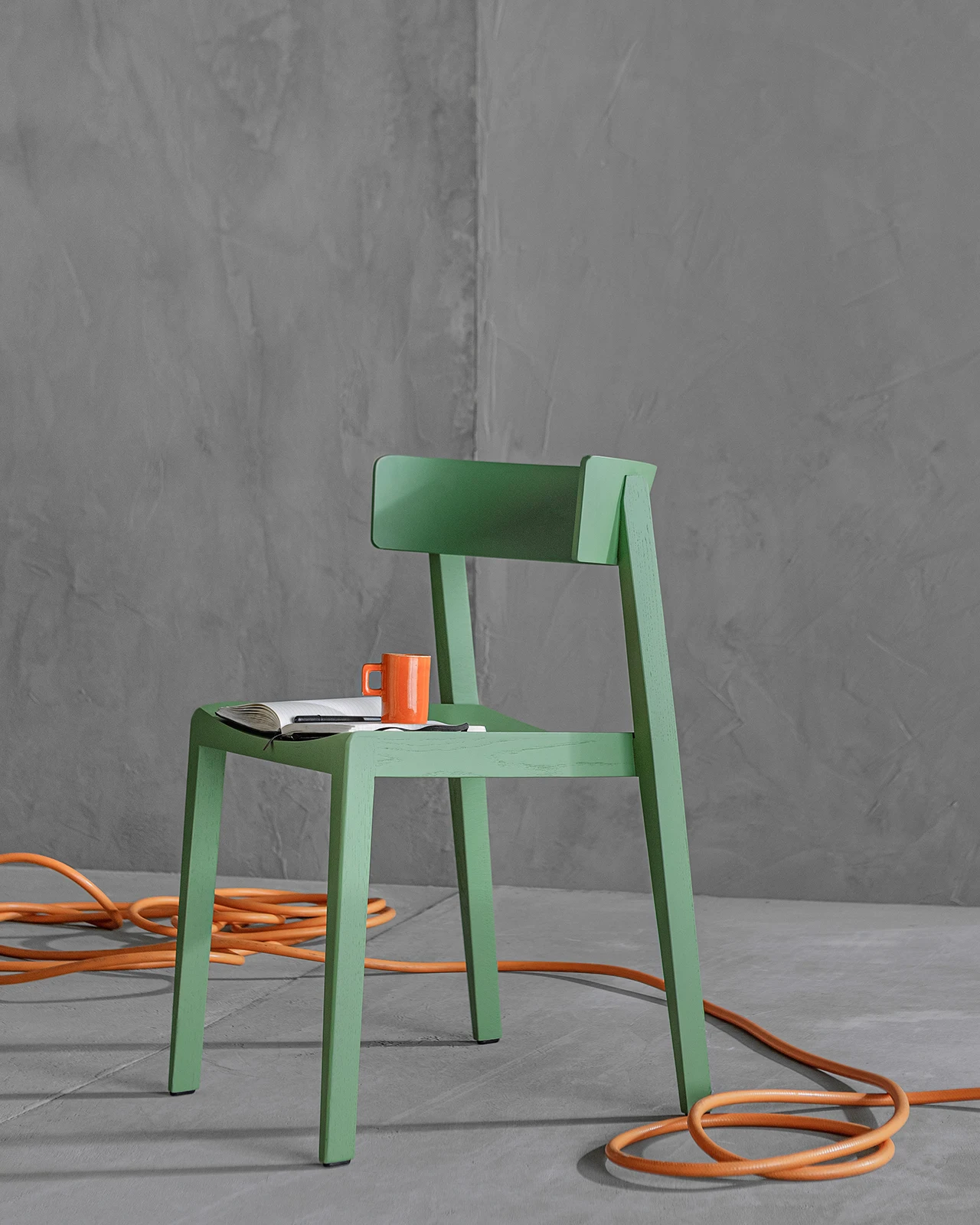 Bik est une leçon de retenue — une chaise en bois réduite à l’essentiel. Pure, affirmée et archétypale, elle se compose de quatre pieds, d’un siège et d’un dossier. Mais derrière cette simplicité apparente se cachent des détails de précision : une légère diminution des pieds, une inclinaison subtile du dossier vers l’avant, et une posture dynamique qui confèrent à Bik son caractère singulier.