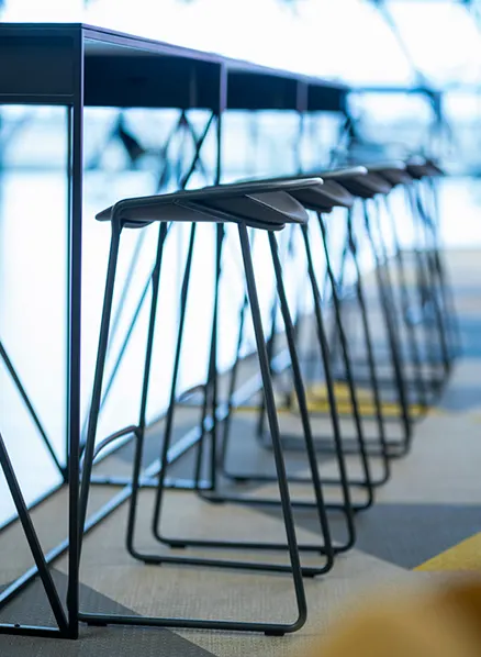 Monk barstool (Lounge zone, International Departures). Project by: KINCL Architects. Photo by: D. Kunić