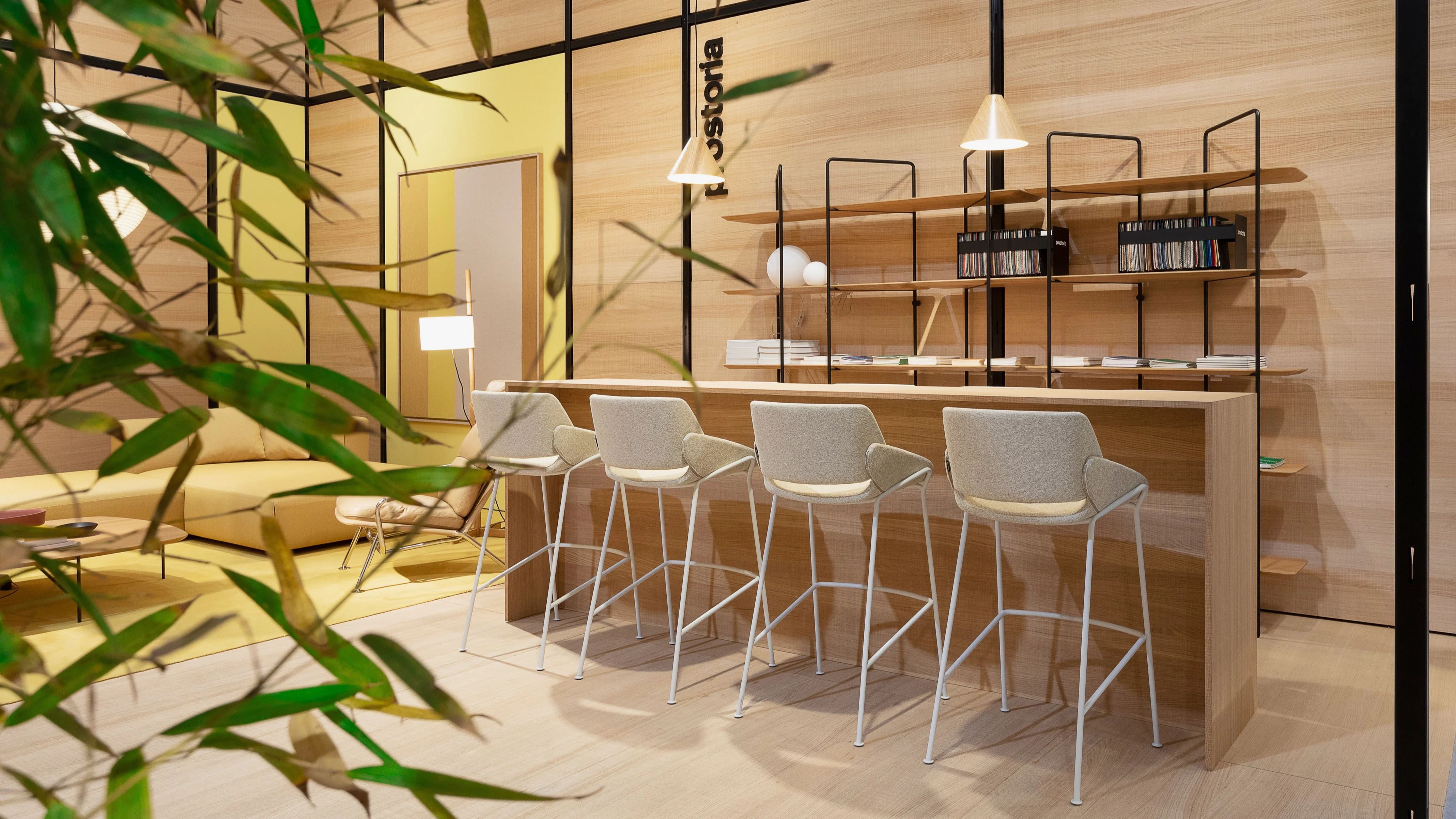 La collection a été présentée dans une palette de couleurs claires, beige, jaune et orange, accentuant son esthétique inspirée de la Méditerranée. L’exposition, conçue par Altherr Désile Park, reprenait la disposition du stand Orgatec 2024, mais a été affinée pour le salon de Milan afin de mettre en valeur les nouveautés et d’offrir une présentation renouvelée et contemporaine.