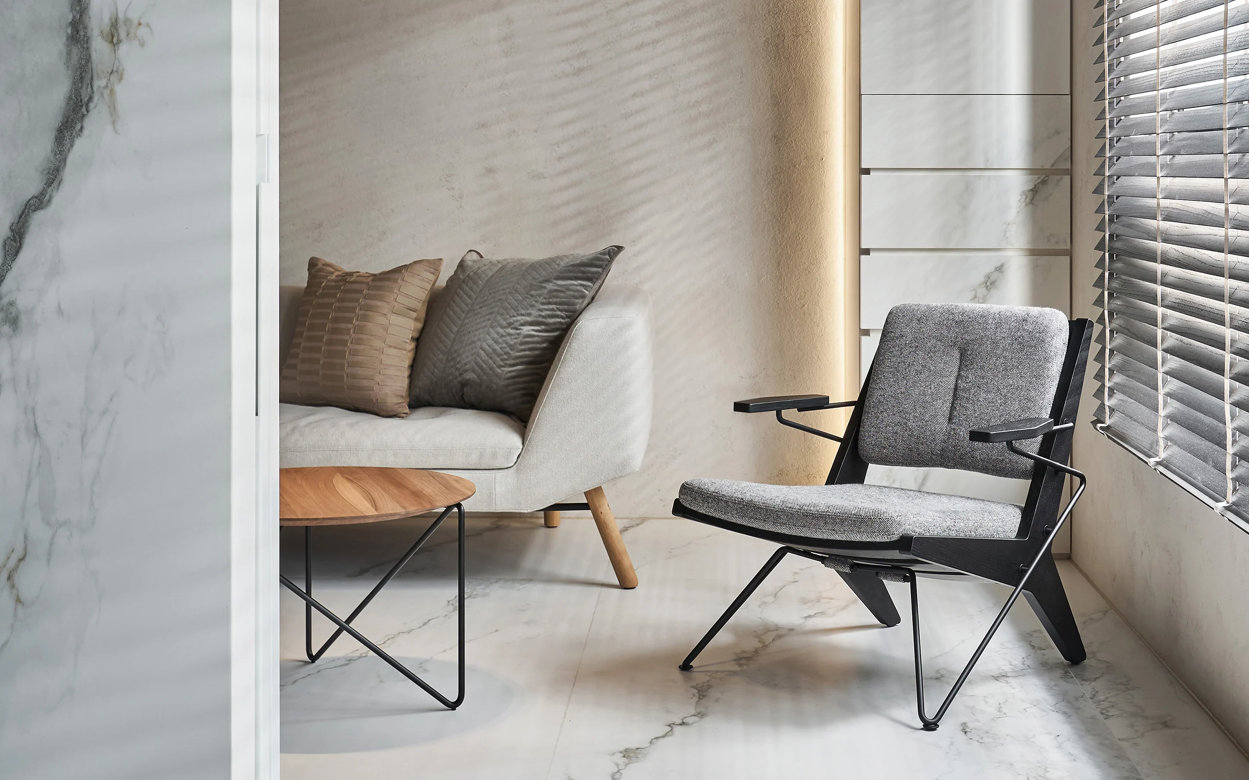 Dans le projet résidentiel Tou Tian, situé à Hsinchu, nos produits ont trouvé leur place - Combinez canapé, fauteuil Toggle et tables basses Polygon rendent cet espace encore plus confortable et douillet.