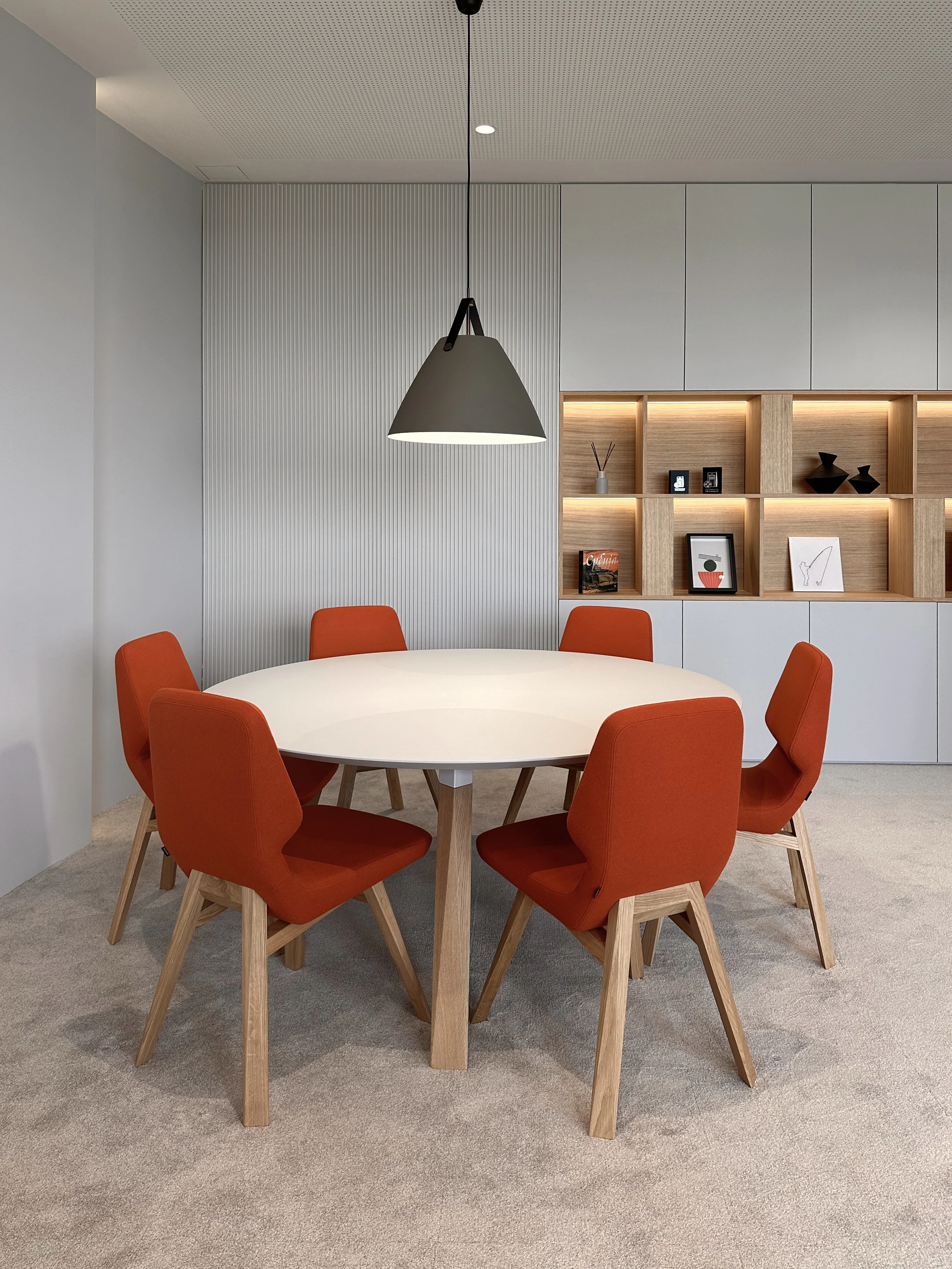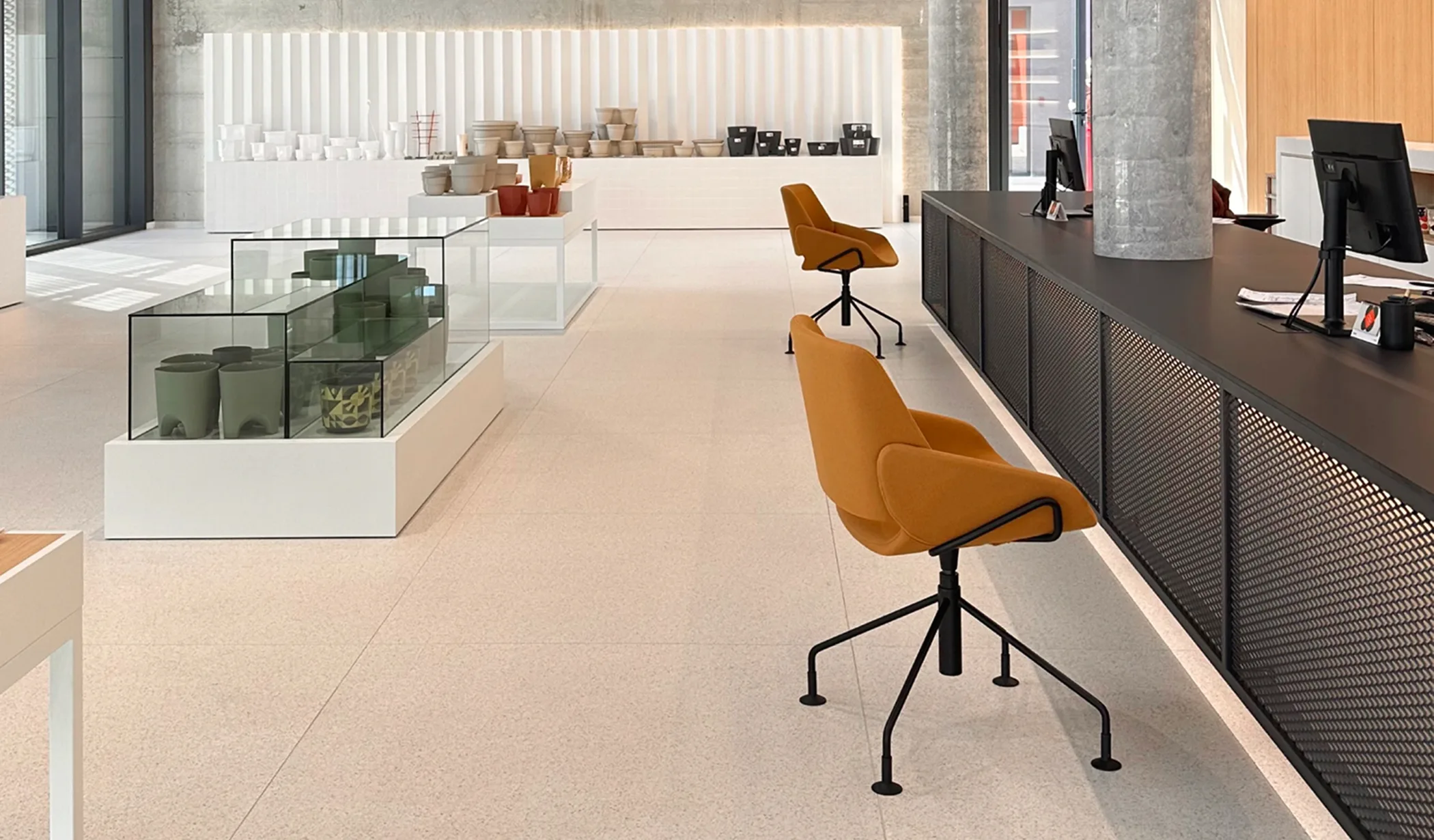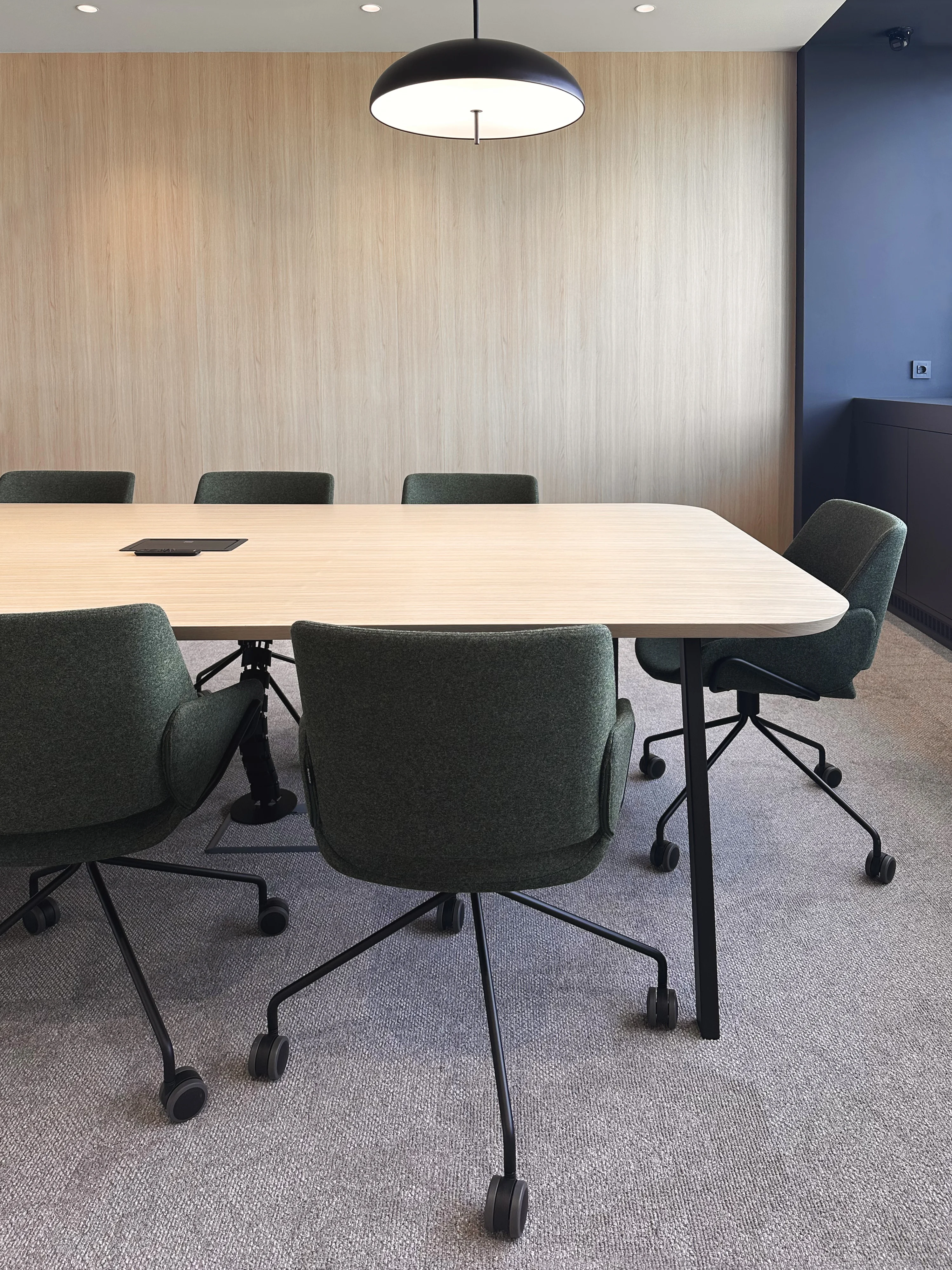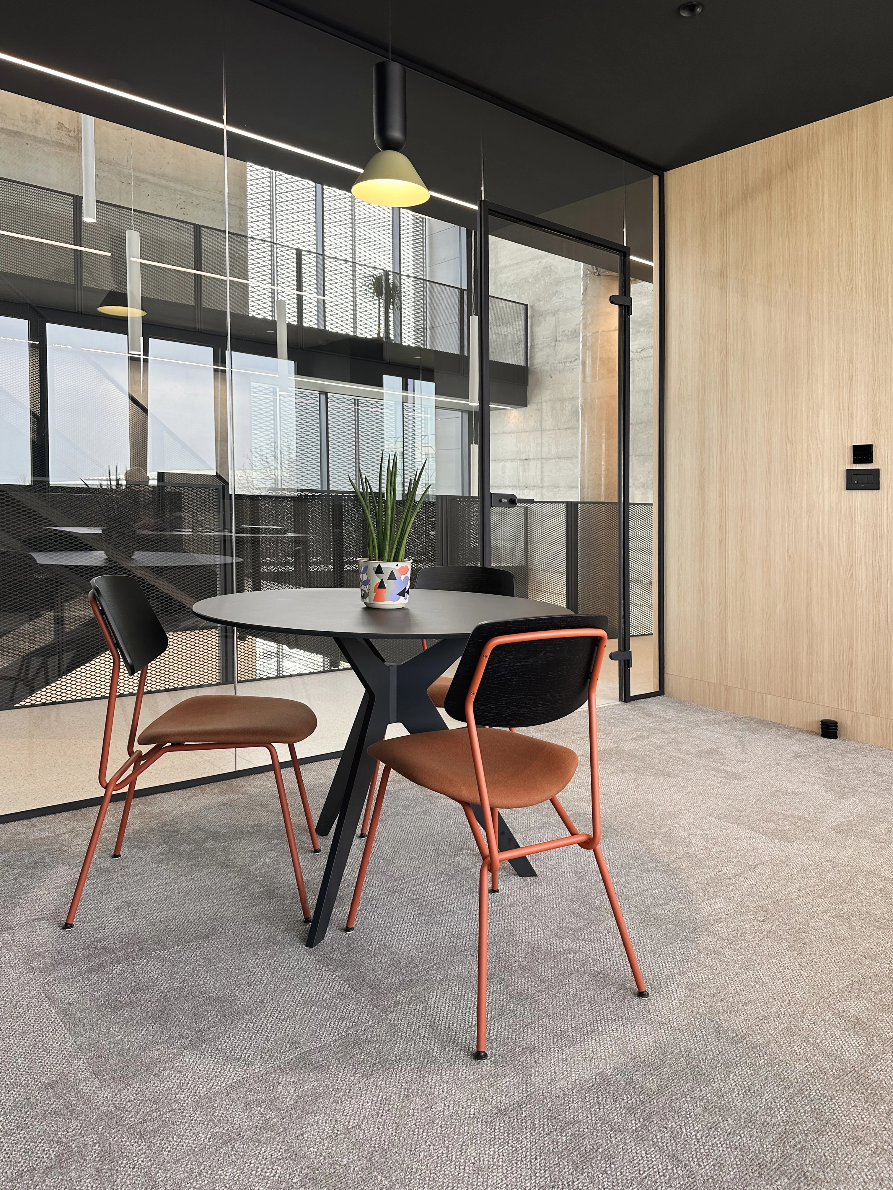 Nos chaises Polygon, Monk et Bik s’intègrent parfaitement à cet intérieur dynamique conçu par Zabriskie Architects. Le bureau reflète une approche contemporaine du travail, pensée pour favoriser la productivité, inspirer la créativité et renforcer la collaboration, offrant un cadre fonctionnel qui répond pleinement à ces exigences.