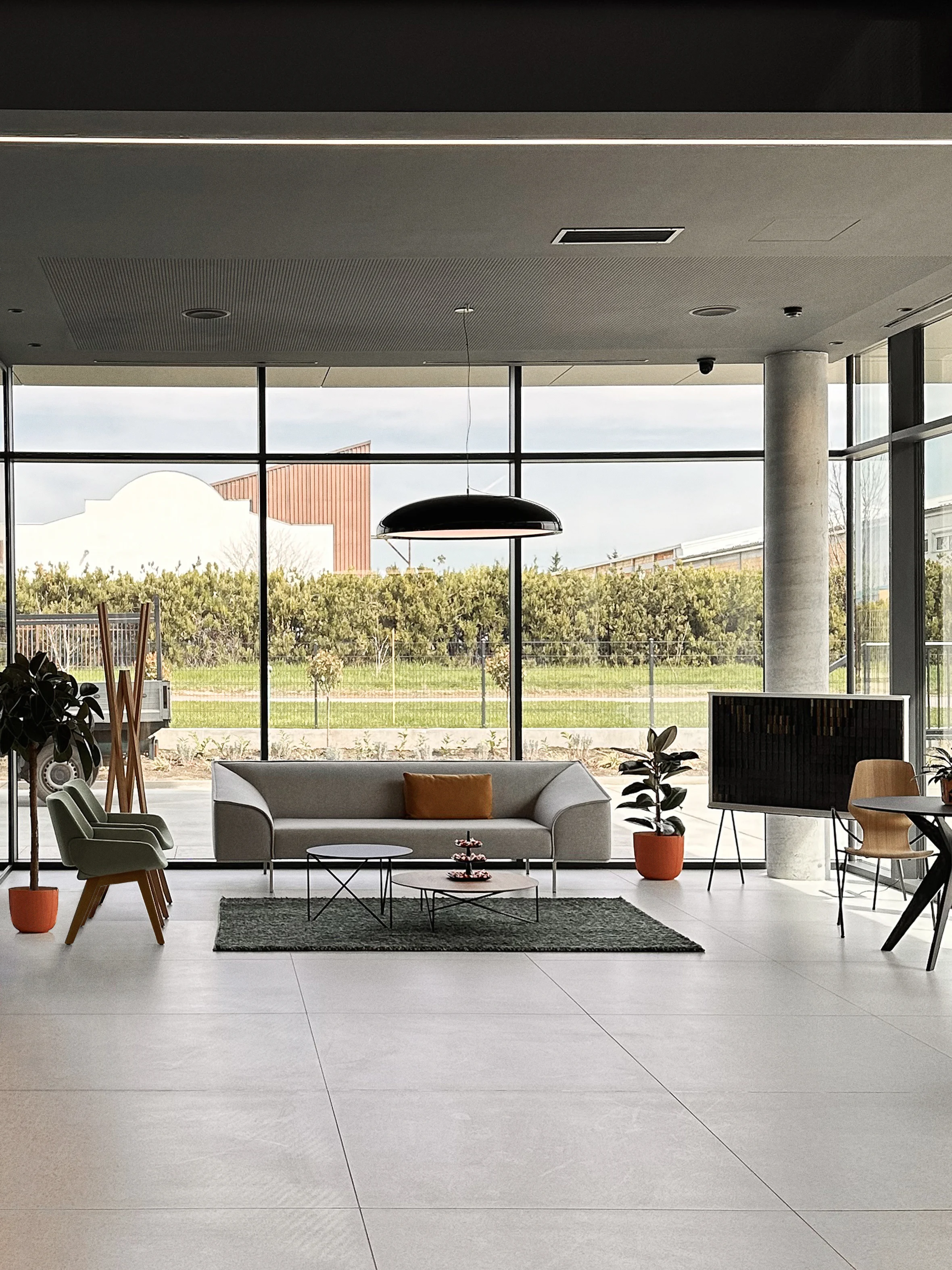 L’intérieur de cet immeuble de bureaux est situé au sein d’un complexe industriel, dans le bâtiment administratif de l’entreprise Drina, à Nova Pazova.