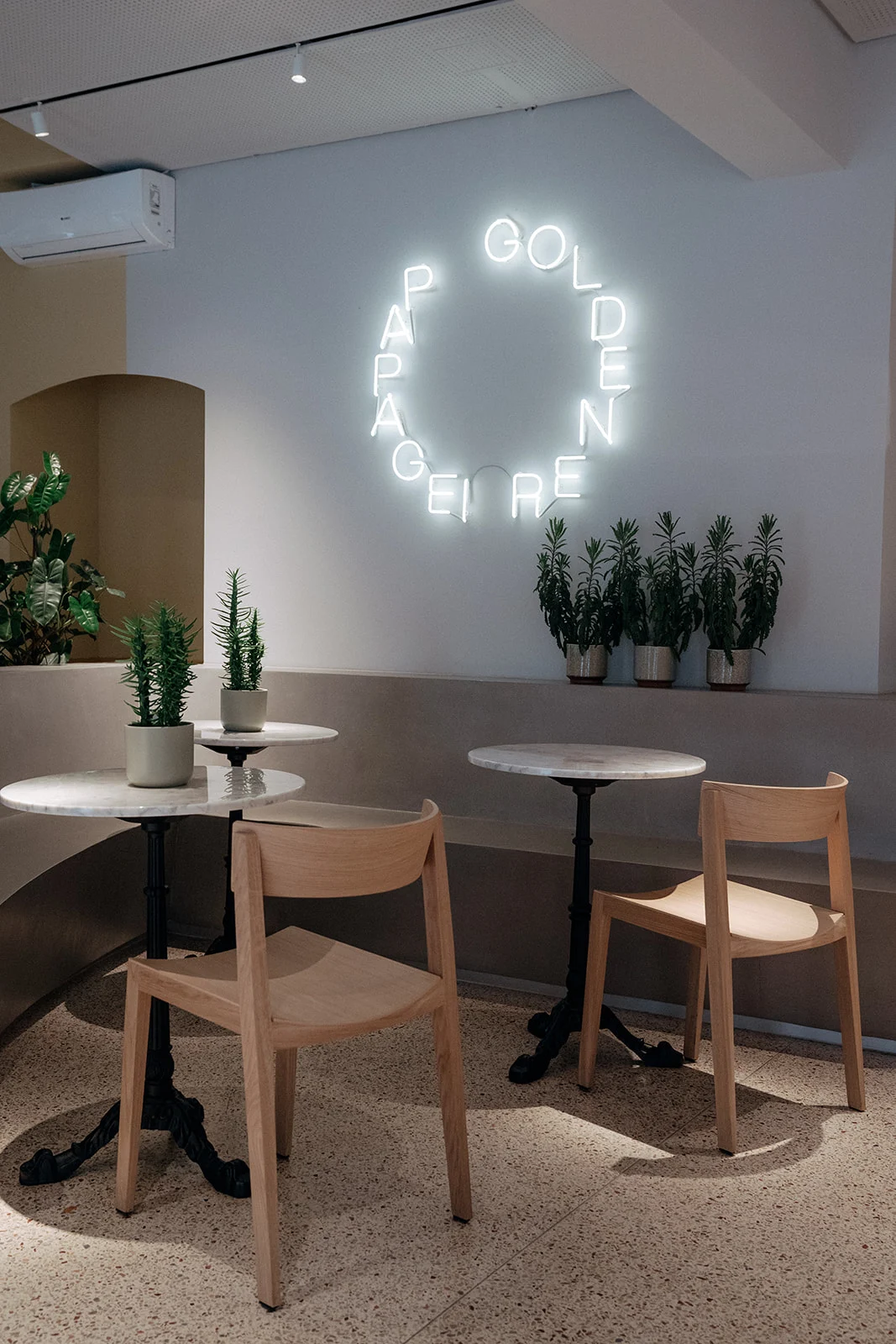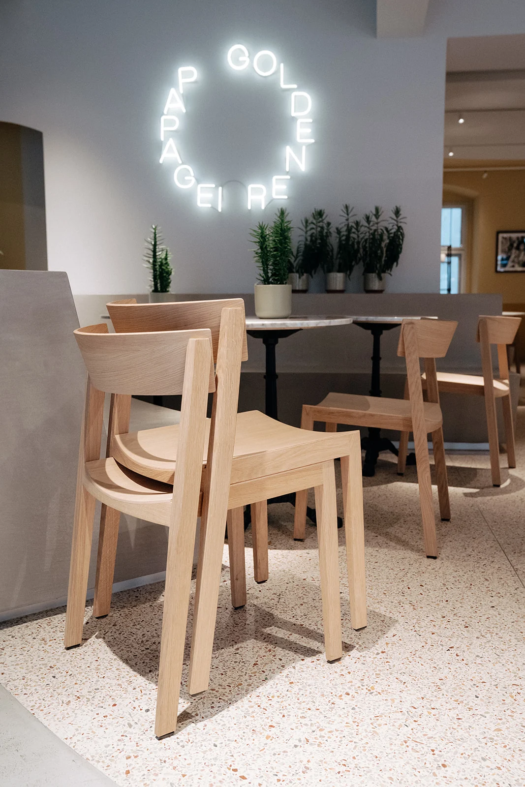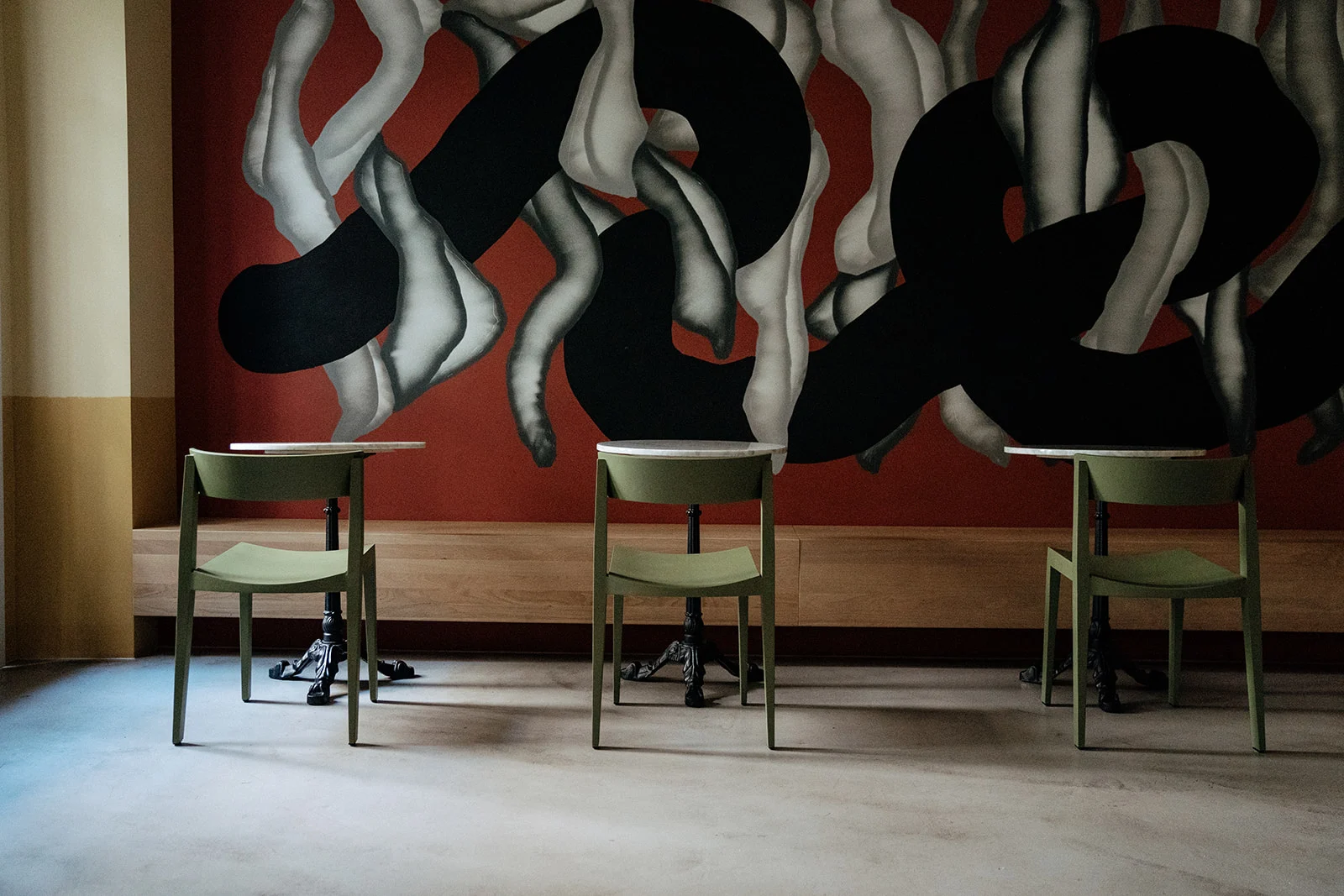 Au Goldener Papagei Café dans le deuxième arrondissement de Vienne, vous ne trouverez pas un oiseau en or, mais un design harmonieux et de haute qualité. Les nuances de vert et de bois de chêne s'harmonisent naturellement avec les nombreuses plantes et les belles couleurs des murs.