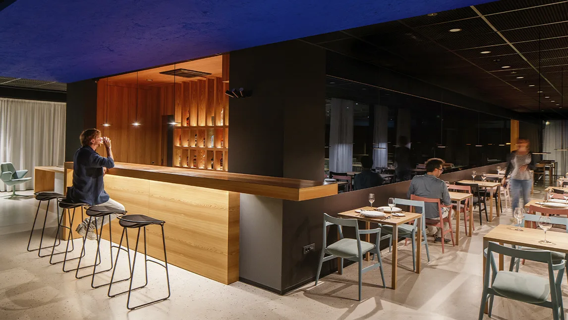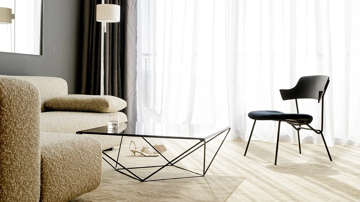 L'intérieur de l'hôtel Osmoliš est entièrement équipé avec la collection de Prostoria : des fauteuils Polygon, Oblique et Trifidae aux chaises Dobra, Bik, Strain et Oblikant, en passant par les tabourets de bar Monk et la collection d'extérieur Osmo.