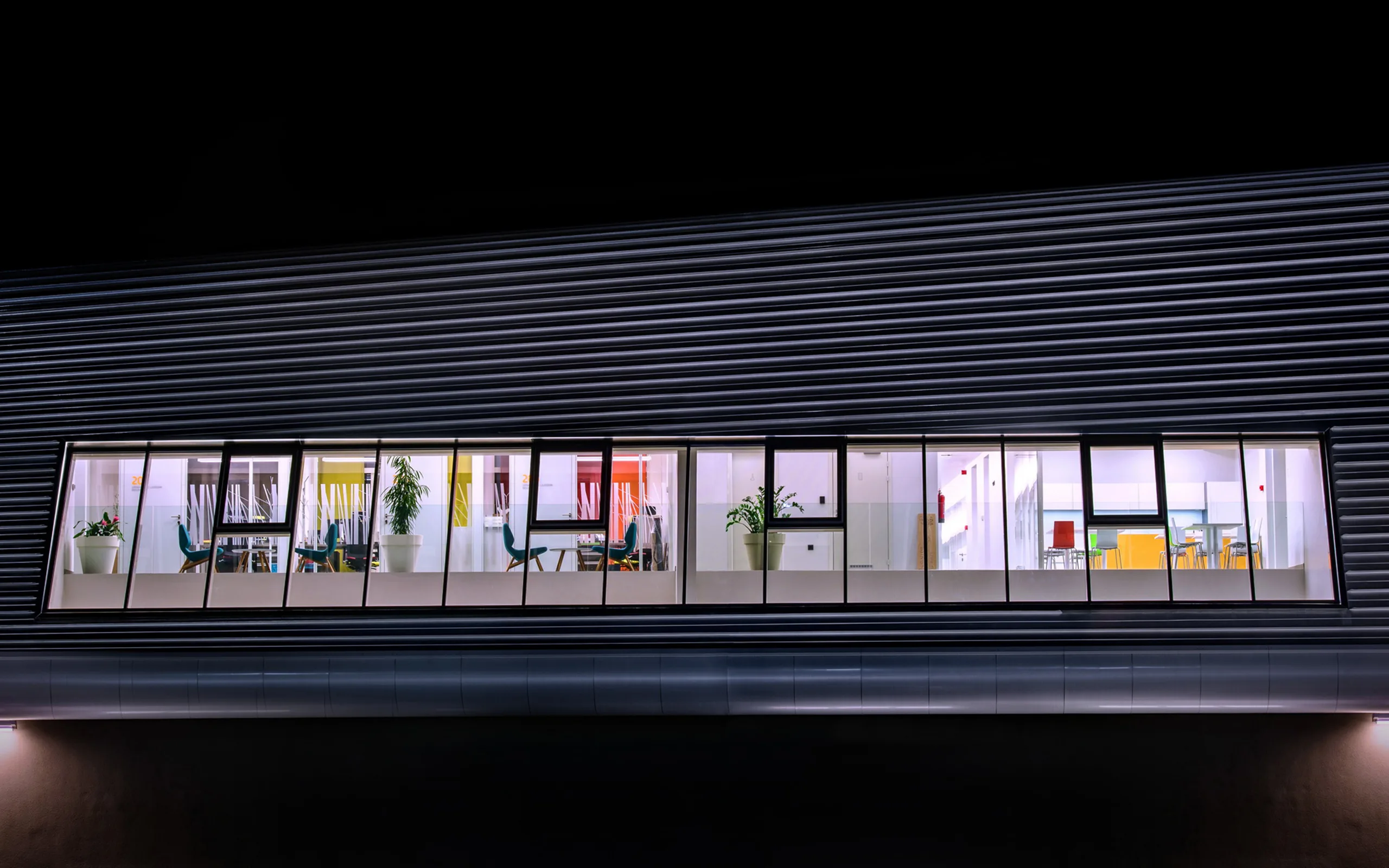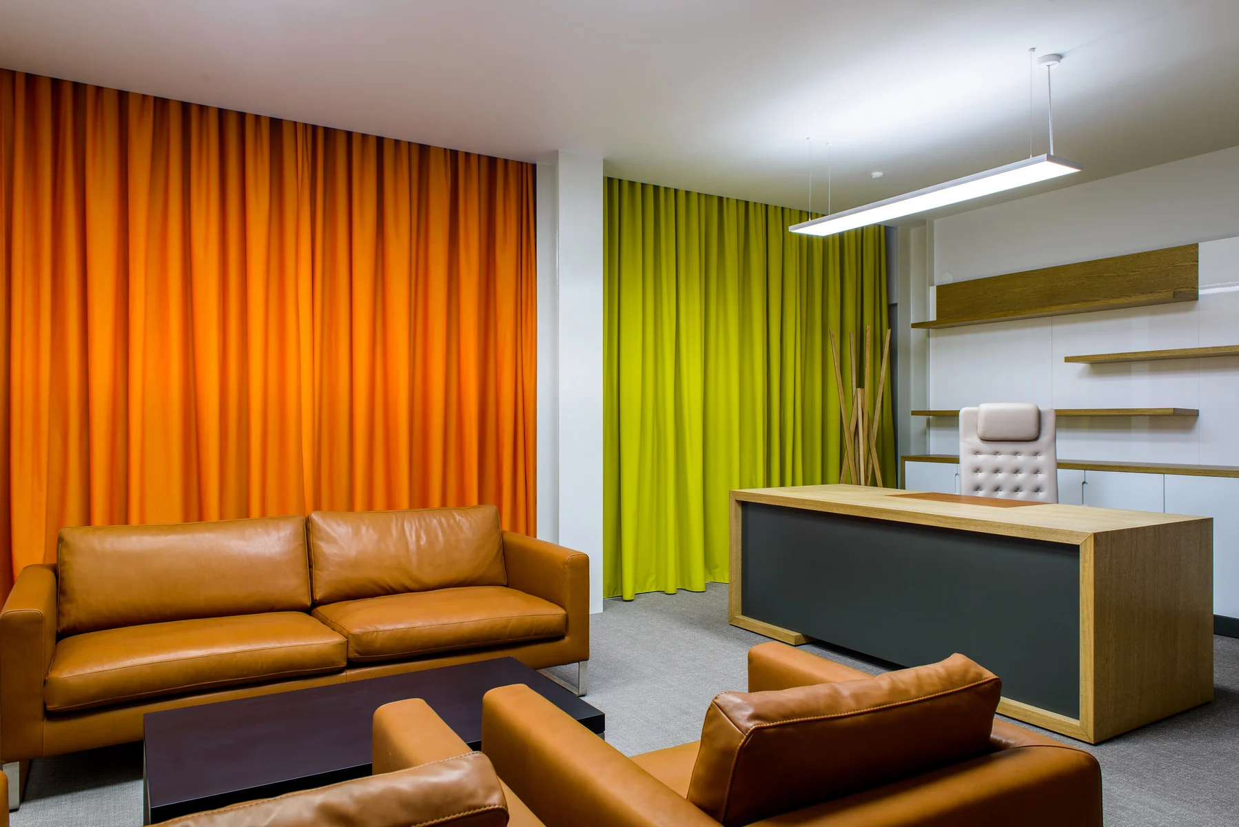 Les ambiances claires enrichies en éléments habituellement réservés aux espaces destinés au confort de séjour, tel qu'espaces résidentiels et peuvent rarement être repérés dans les bureaux - les rideaux en couleurs vives et texture douce, les meubles en bois et rembourrés, les couleurs personnalisées. Ainsi, chaque utilisateur a la possibilité de configurer son propre espace. Étant donné que ces éléments sont combinés avec les parois vitrées externes, cet individualisme se reflète sur l’image de la façade en la modifiant de jour en jour.