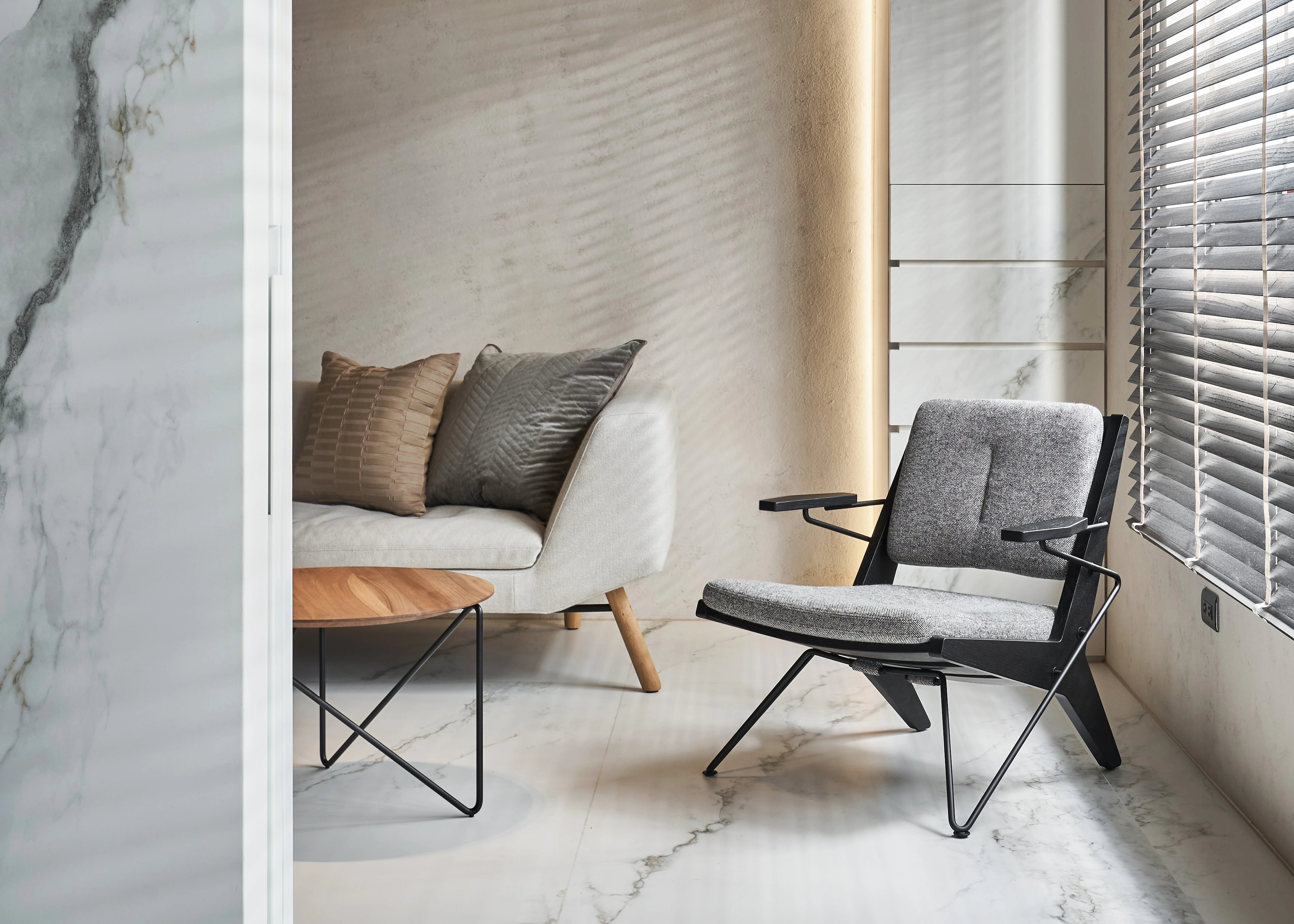 Dans le projet résidentiel Tou Tian, situé à Hsinchu, nos produits ont trouvé leur place - Combinez canapé, fauteuil Toggle et tables basses Polygon rendent cet espace encore plus confortable et douillet.