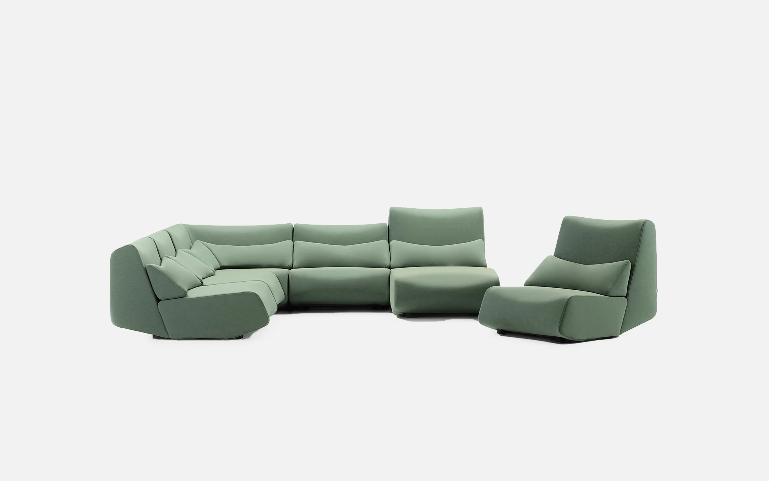 Absent je modularni sustav koji kombinira različite visine naslona i različite dubine sjedala, a mekani jastuk pridonosi ergonomiji i posebnom osjetilnom doživljaju. Dizajniran je za položaj tijela između sjedenja i ležanja, što uz njegovu ergonomičnost pruža vrhunsku udobnost i doživljaj odmaranja s daškom futurizma. Kada u okruženju doma odložite svoj zaštitini oklop, u dodiru s Absentom vaše se tijelo spontano opušta, a um se smiruje.