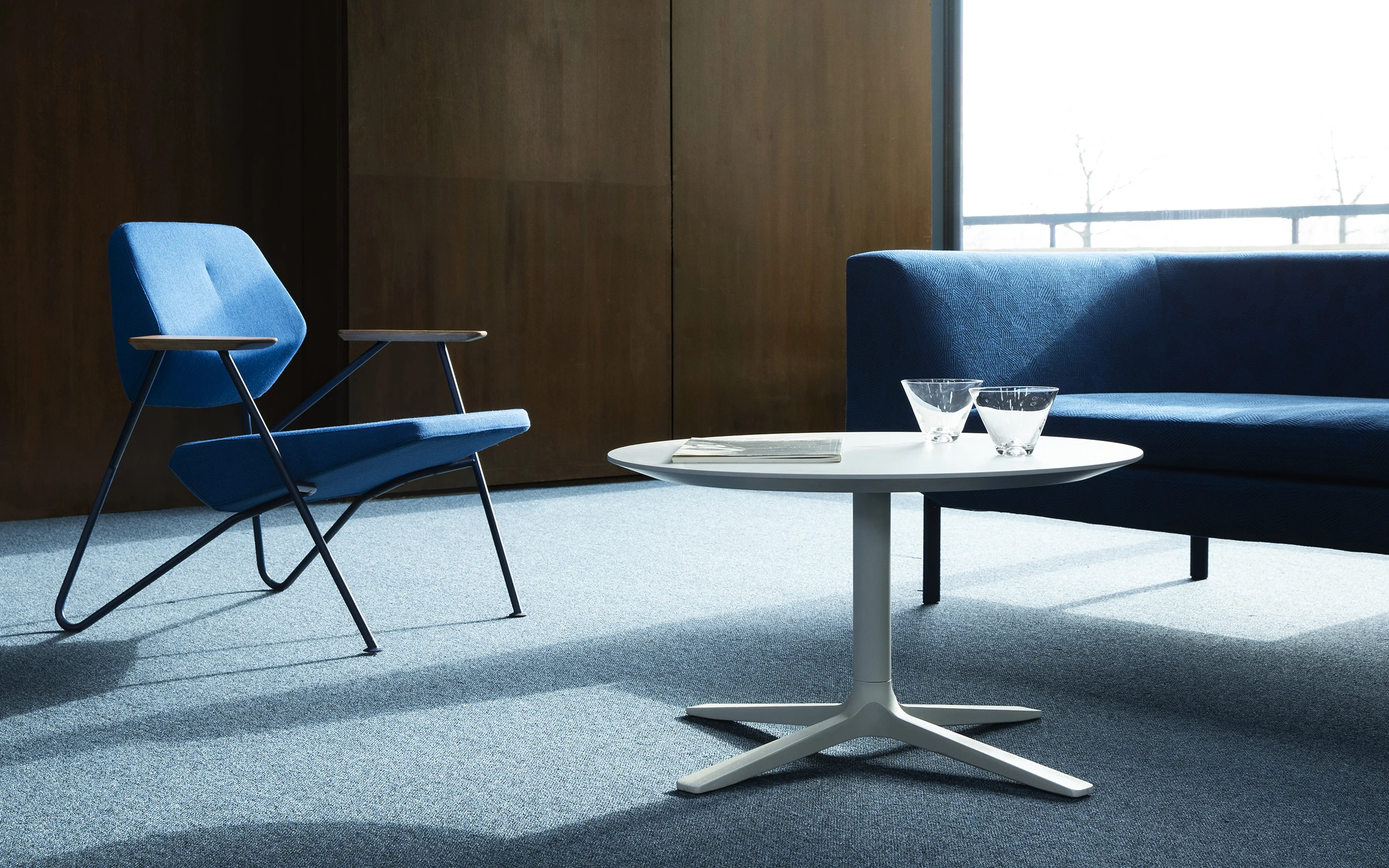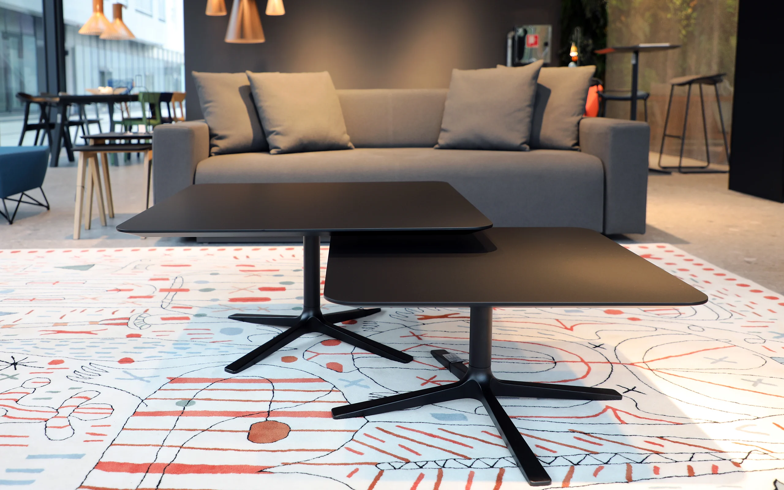 Niski stolić Trifidae upotpunjuje kolekciju sjedala laganim, a čvrsto definiranim oblikom. Lijevana aluminijska baza odražava fluidnu geometriju stolica, dok ploha stola, dostupna u nekoliko završnih obrada, unosi toplinu i taktilnost. Dizajniran za neformalne prostore ili zone za opuštanje, stolići služe kao smireni središnji element, spajajući skulpturalnu logiku kolekcije sa svakodnevnom funkcionalnošću.