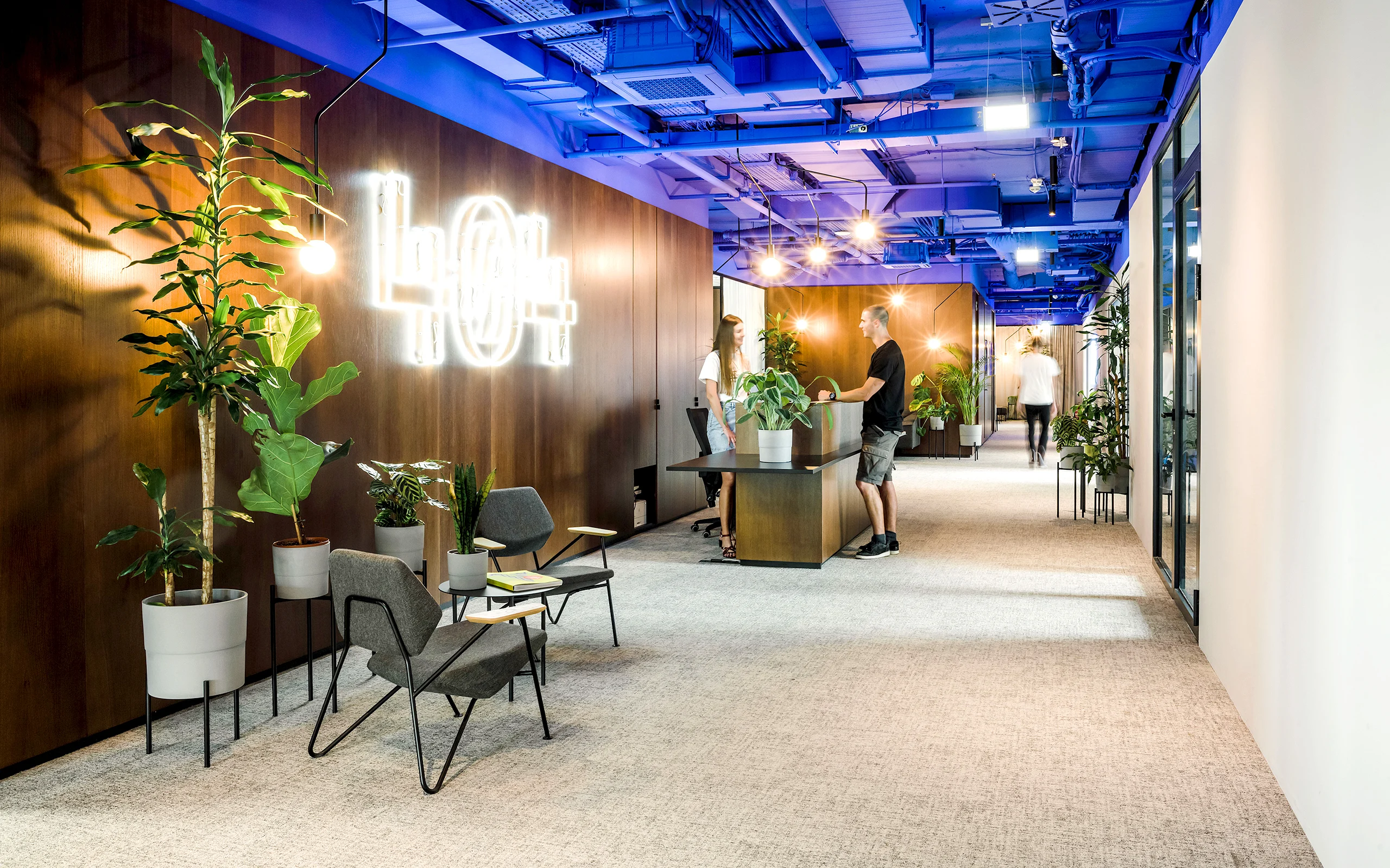 Uređenje interijera agencije 404 projektirano je na način da se potakne međusobna komunikacija i osjećaj zajedništva među velikim brojem zaposlenika ove agencije.