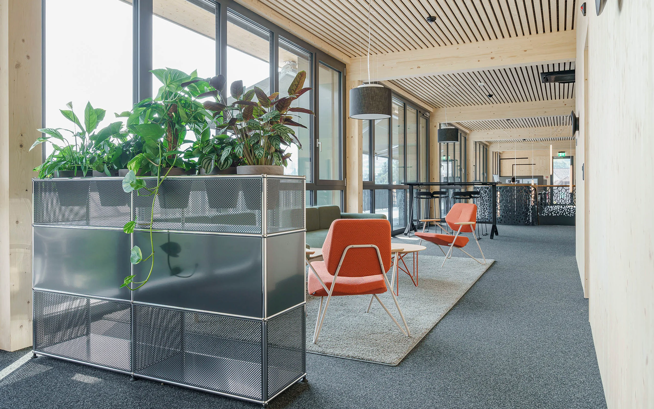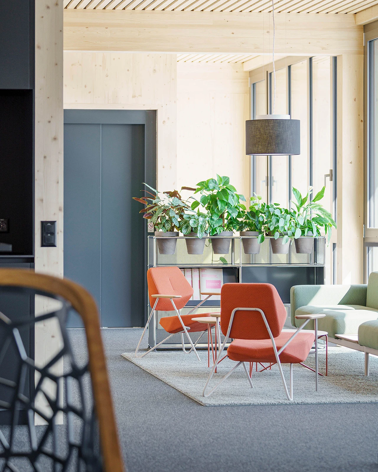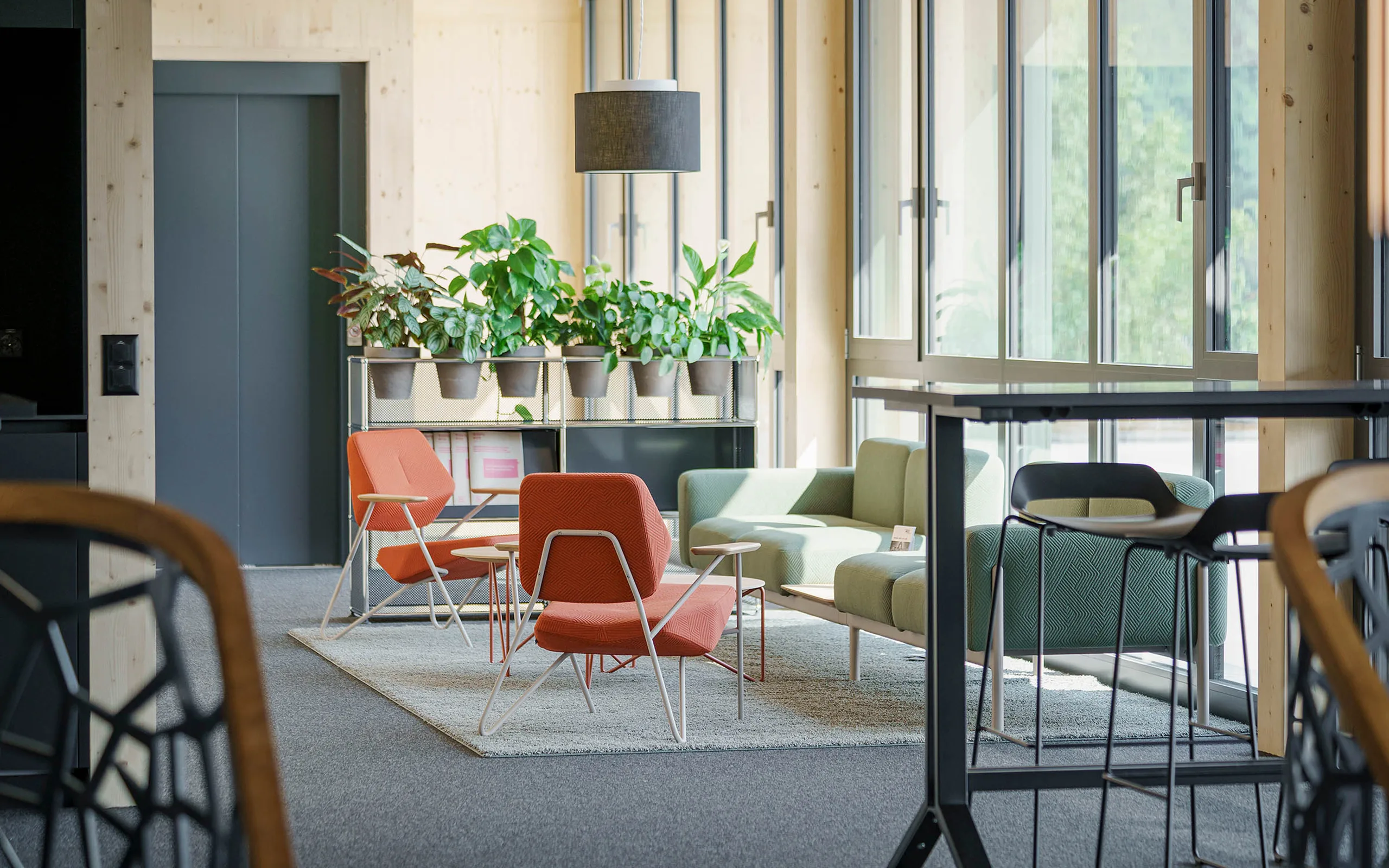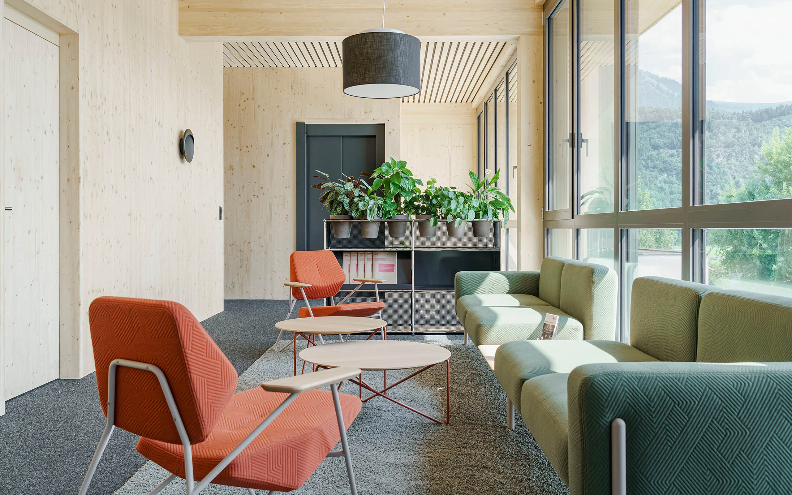 U tom obnovljenom kontekstu, zona za opuštanje postaje središnje mjesto društvene interakcije i povezivanja. NOWW konsulting opremio je ovaj prostor Prostorijinom modularnom sofom Rostrum, koja prostor umiruje laganom, arhitektonskom prisutnošću te nude udobnost za kratke razgovore i dulje pauze. Naslonjač i niski stolići Polygon pružaju skulpturalni kontrapunkt.