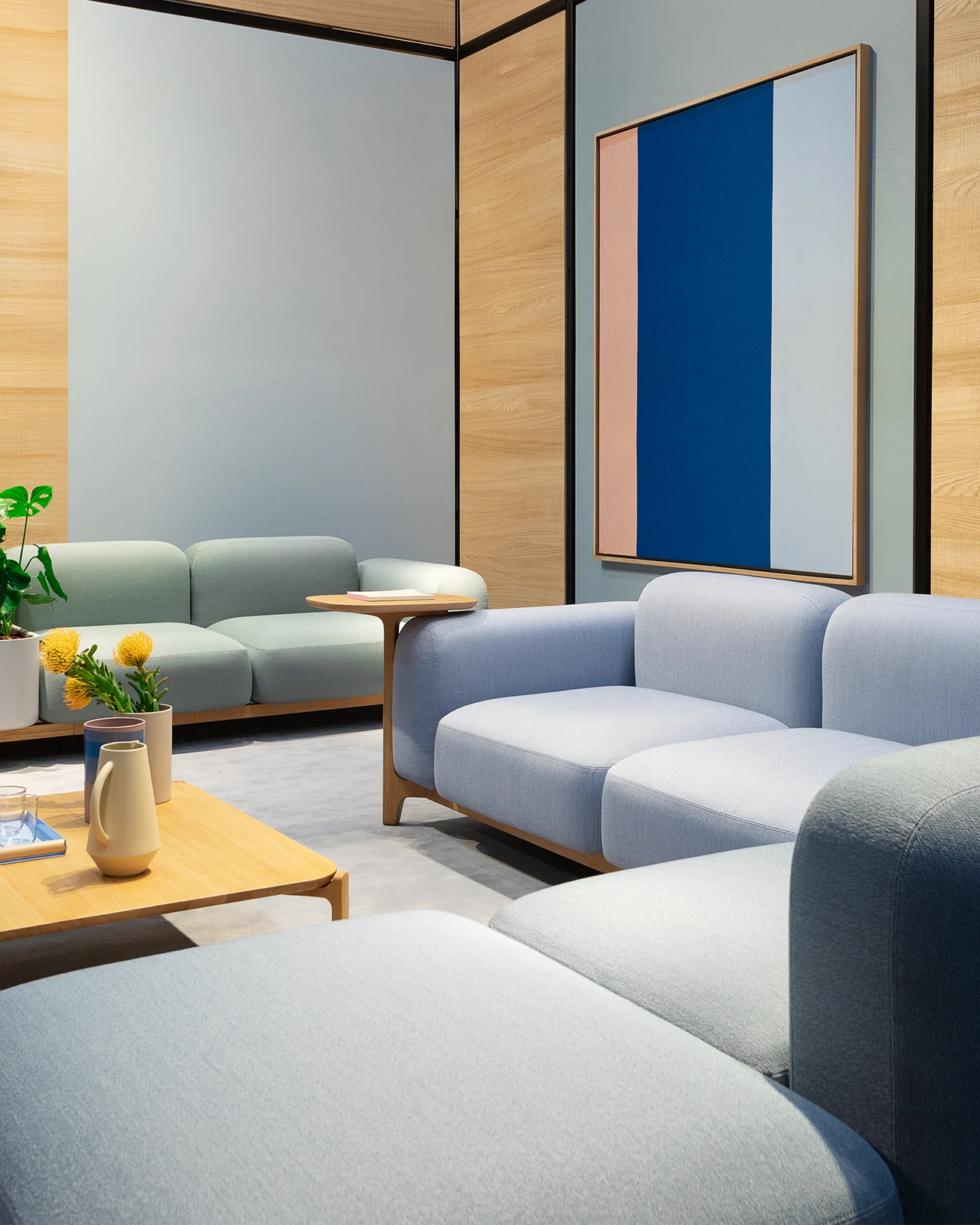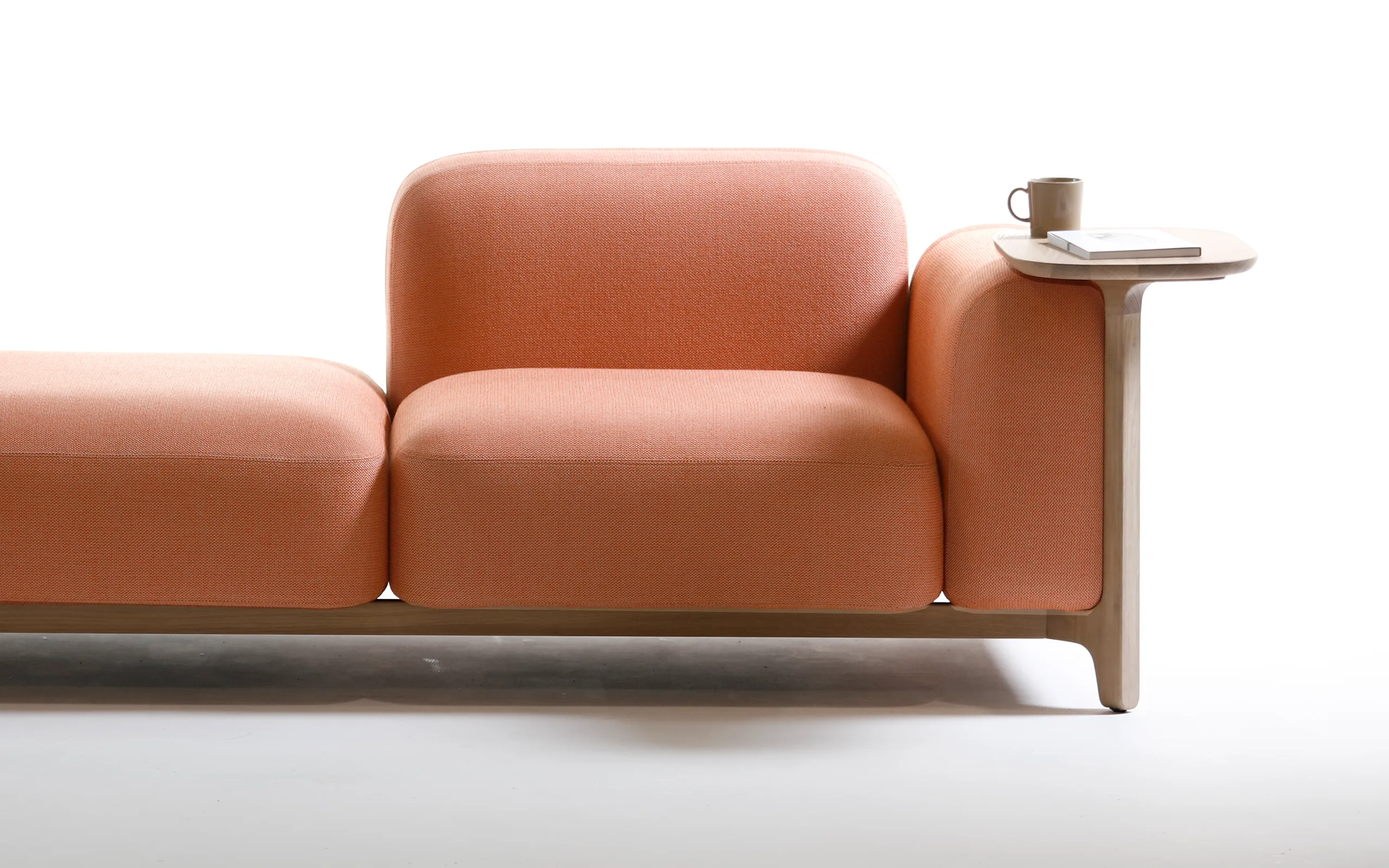 Soft and sculptural, the Sabot pouf adds a friendly and versatile touch to the modular system. Like the rest of the collection, it’s elevated on signature timber feet that echo traditional clogs, creating a floating effect. Use it as an informal seat, footrest, or connector between sofa modules - Sabot’s pouf encourages easy interaction and playful arrangements. Its approachable form and adaptability make it a natural fit for lounges, lobbies, and collaborative spaces.