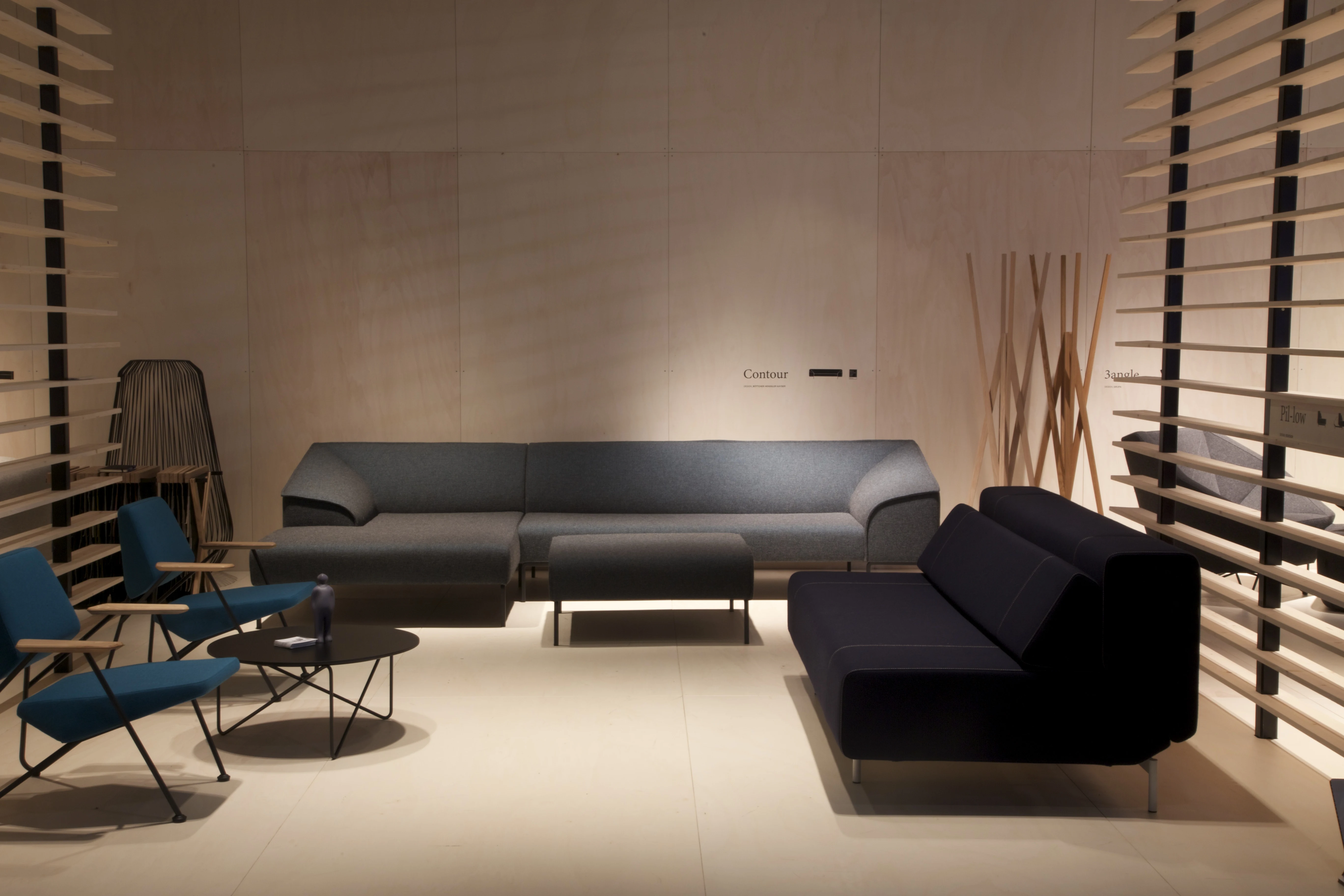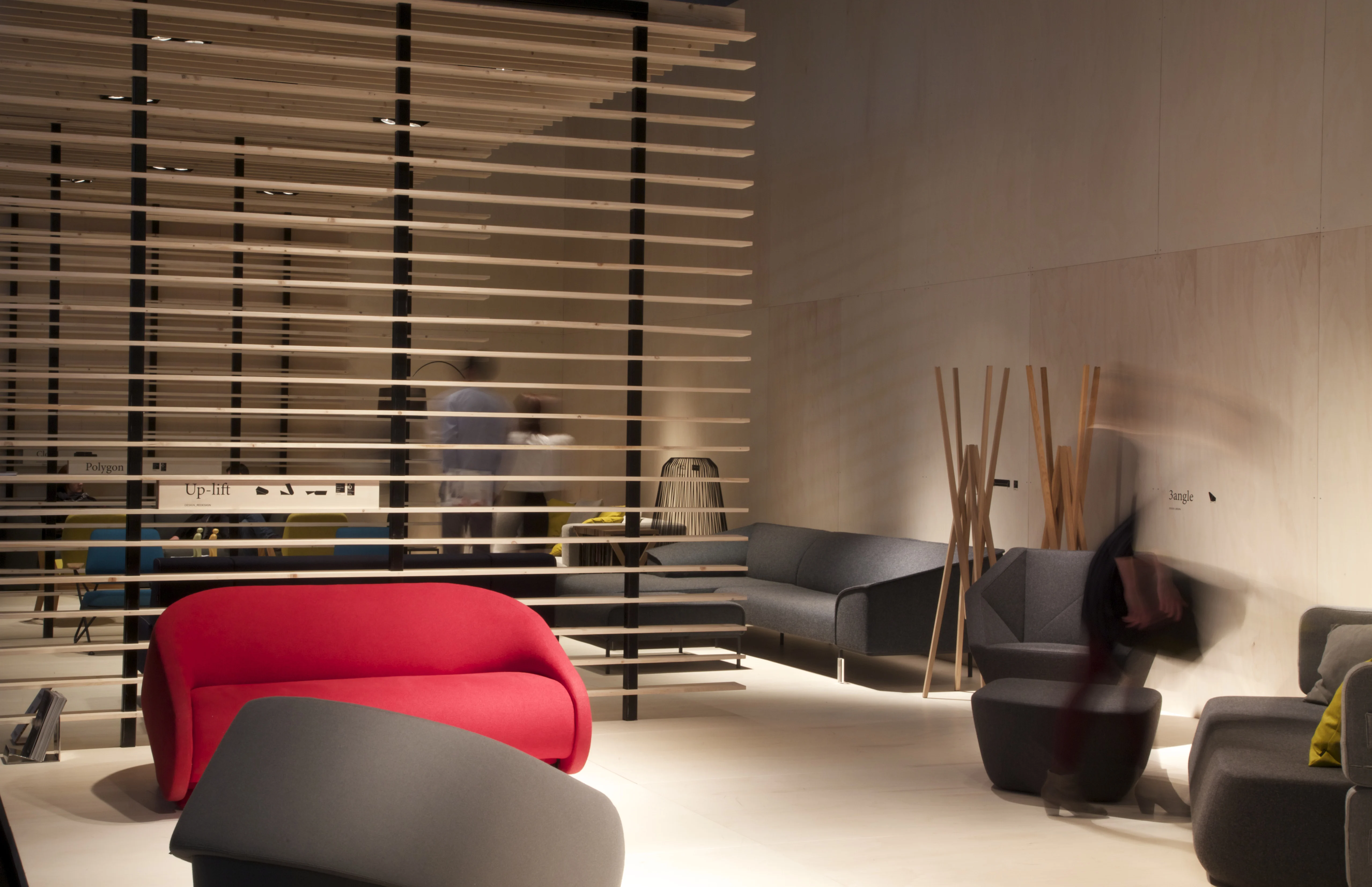 By simple adding of vertical and horizontal wooden surfaces a clear surface has been obtained as a scene of products that are exhibited in the new collection of fabrics of moderate tones with particular emphases. By transparent and rhythmic arranging lattices, boundaries between different spaces have been created under the slogan Every room has a story. The lighting is set by our long-term partners Intra Lighting d.o.o. and Secto Design. Thank you!